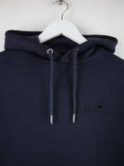Hoodie der Marke Ellesse in Größe M. Er ist aus einer Baumwollmischung angefertigt und in Blau in Stock.