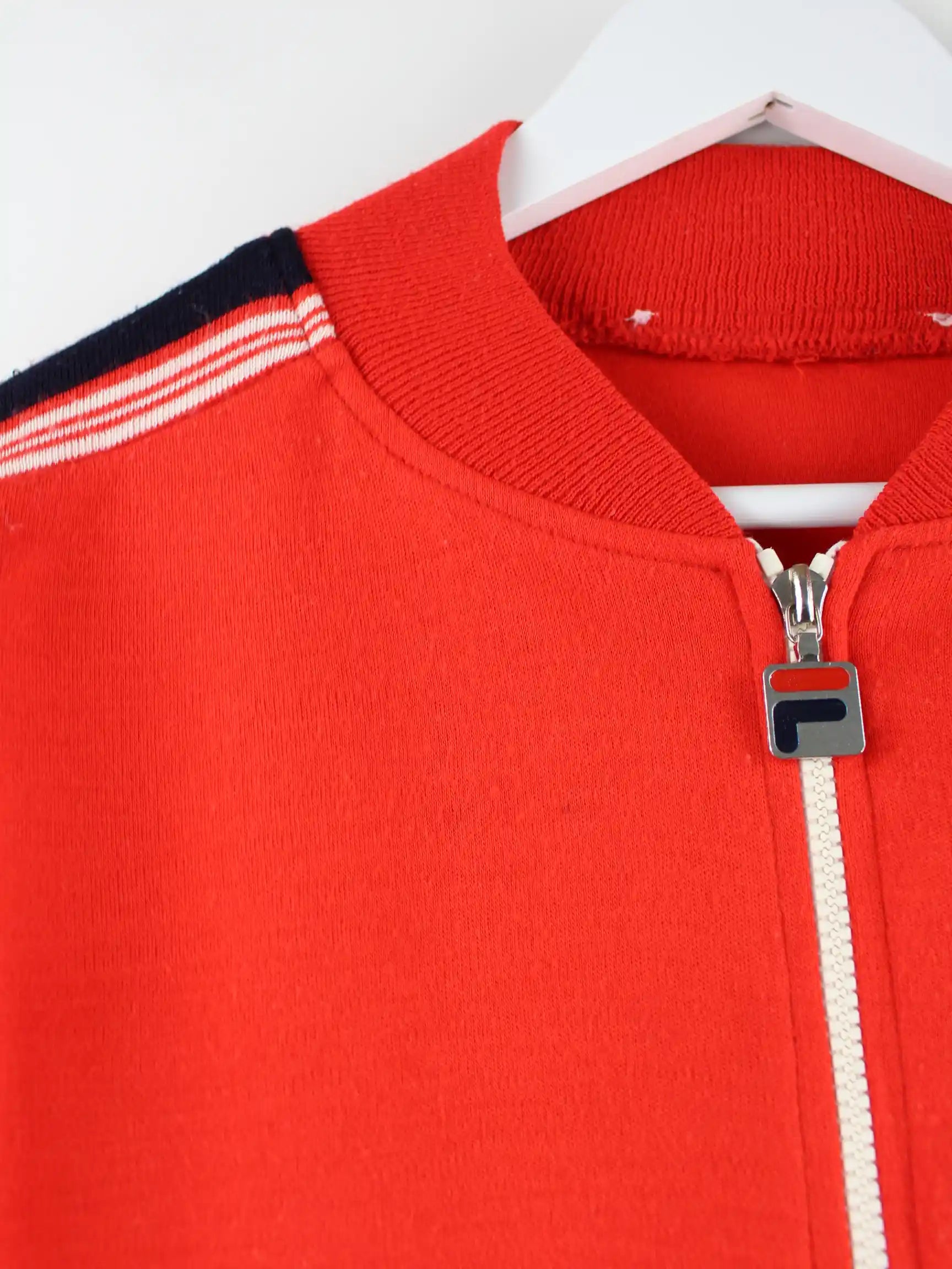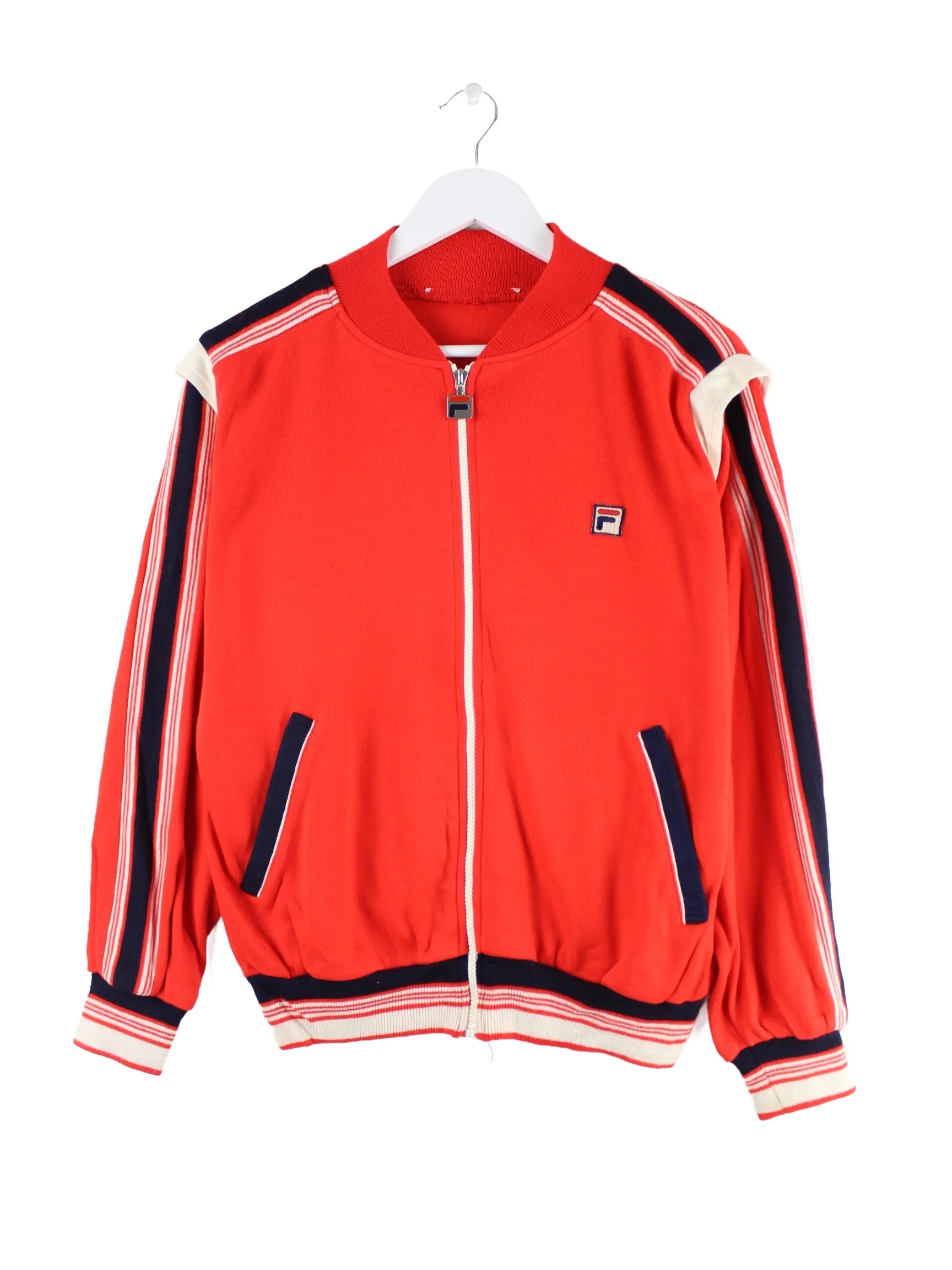 Rote Sweatjacke von Fila in Größe S. Sie ist aus einer Baumwollmischung angefertigt und in gutem Zustand lieferbar.