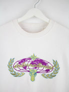 Weißer Sweater vom Brand Nike aus den 90'ern in Größe M. Er ist aus einer Baumwollmischung gefertigt und in gutem Zustand zu bekommen.