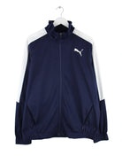 Trainingsjacke vom Brand Puma in Größe L. Sie ist aus Synthetik angefertigt und in Blau bei uns zu bekommen. Mit seltenem Print.