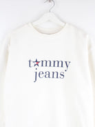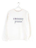 Weißer Sweater des Labels Tommy Hilfiger in Größe L. Er ist aus einer Baumwollmischung gefertigt und in gutem Zustand lieferbar. Mit seltenem 00s Print.