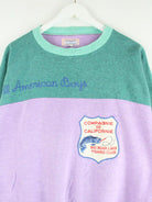 Vintage Sweater in Größe L aus den 80'ern. Er ist aus einer Baumwollmischung produziert und in Lila lieferbar.