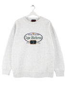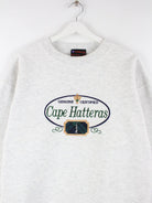 Vintage Sweater in Größe L aus den 90'ern. Er ist aus einer Baumwollmischung hergestellt und in Grau in Stock.
