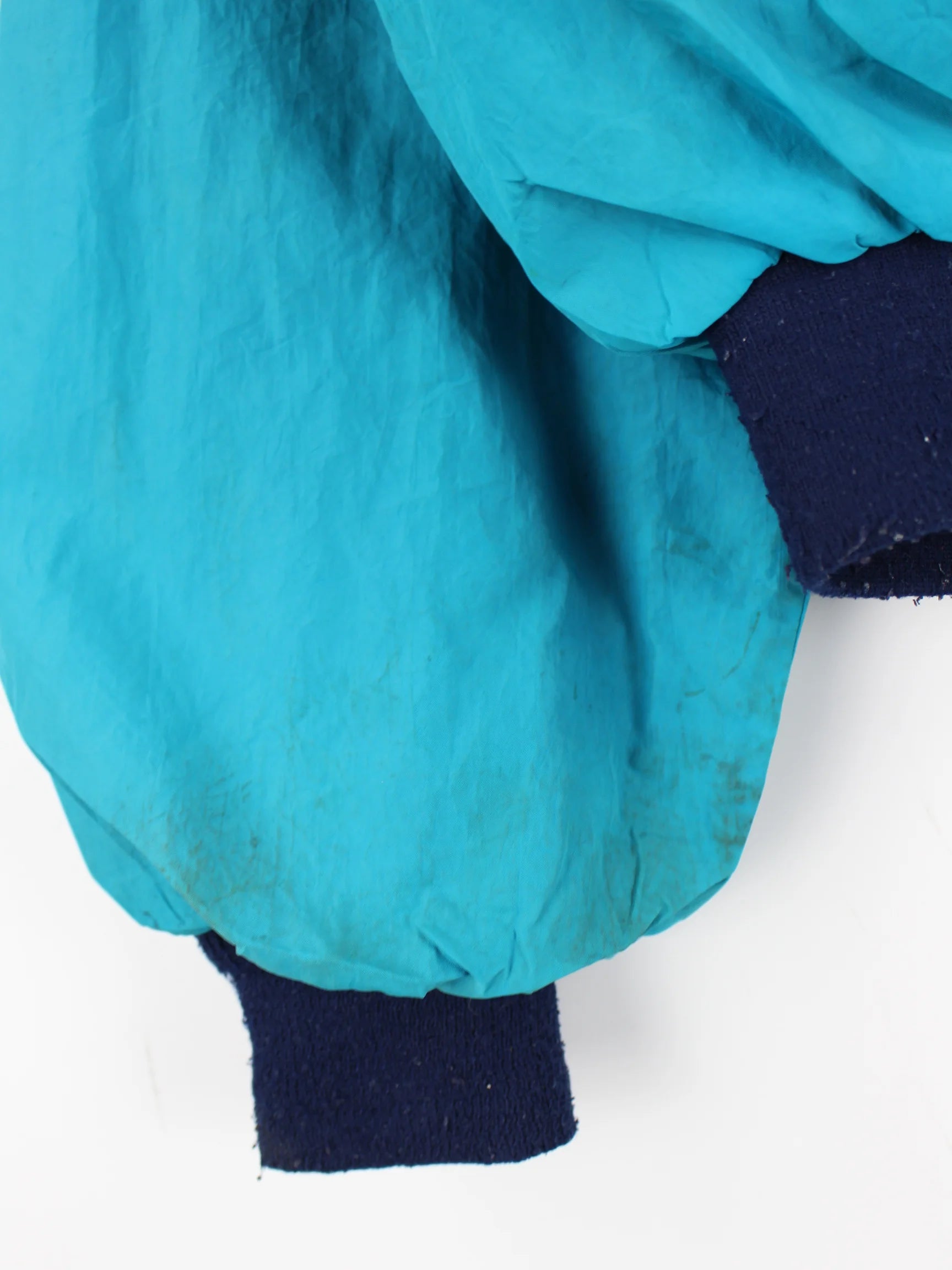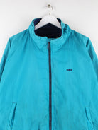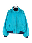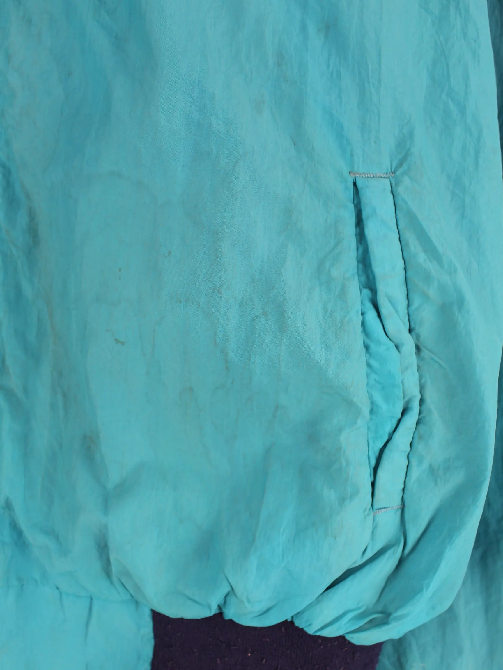 Vintage Leichte Jacke in Größe L aus den 90'ern. Sie ist aus Synthetik gefertigt und in Türkis vorrätig.