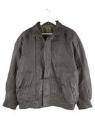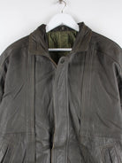 Vintage Jacke in Größe M aus den 90'ern. Sie ist aus Leder angefertigt und in Grau in Stock.
