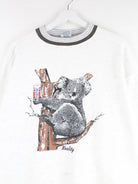 Grauer Vintage Sweater aus den 90'ern in Größe XXL. Er ist aus einer Baumwollmischung und in gutem Zustand lieferbar. Mit chiquem Koala Print.