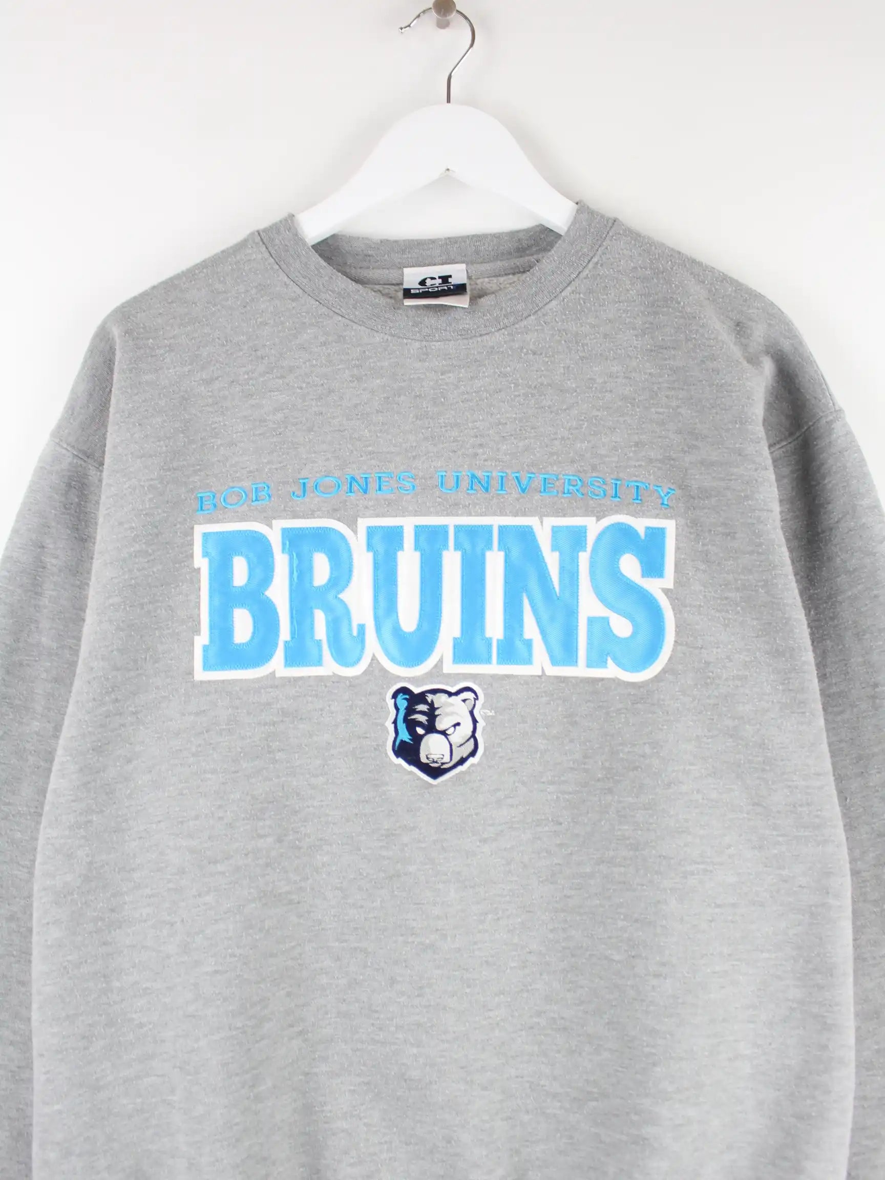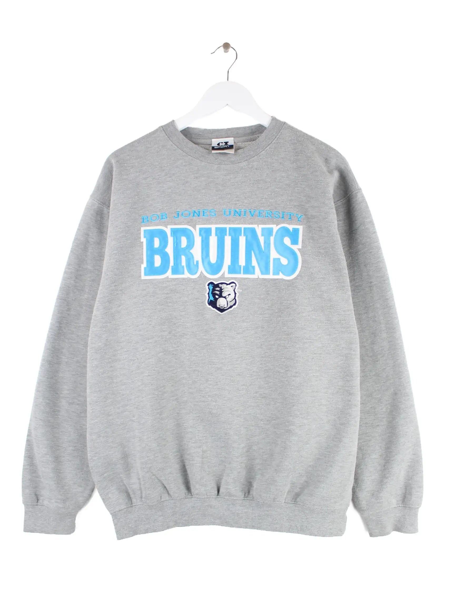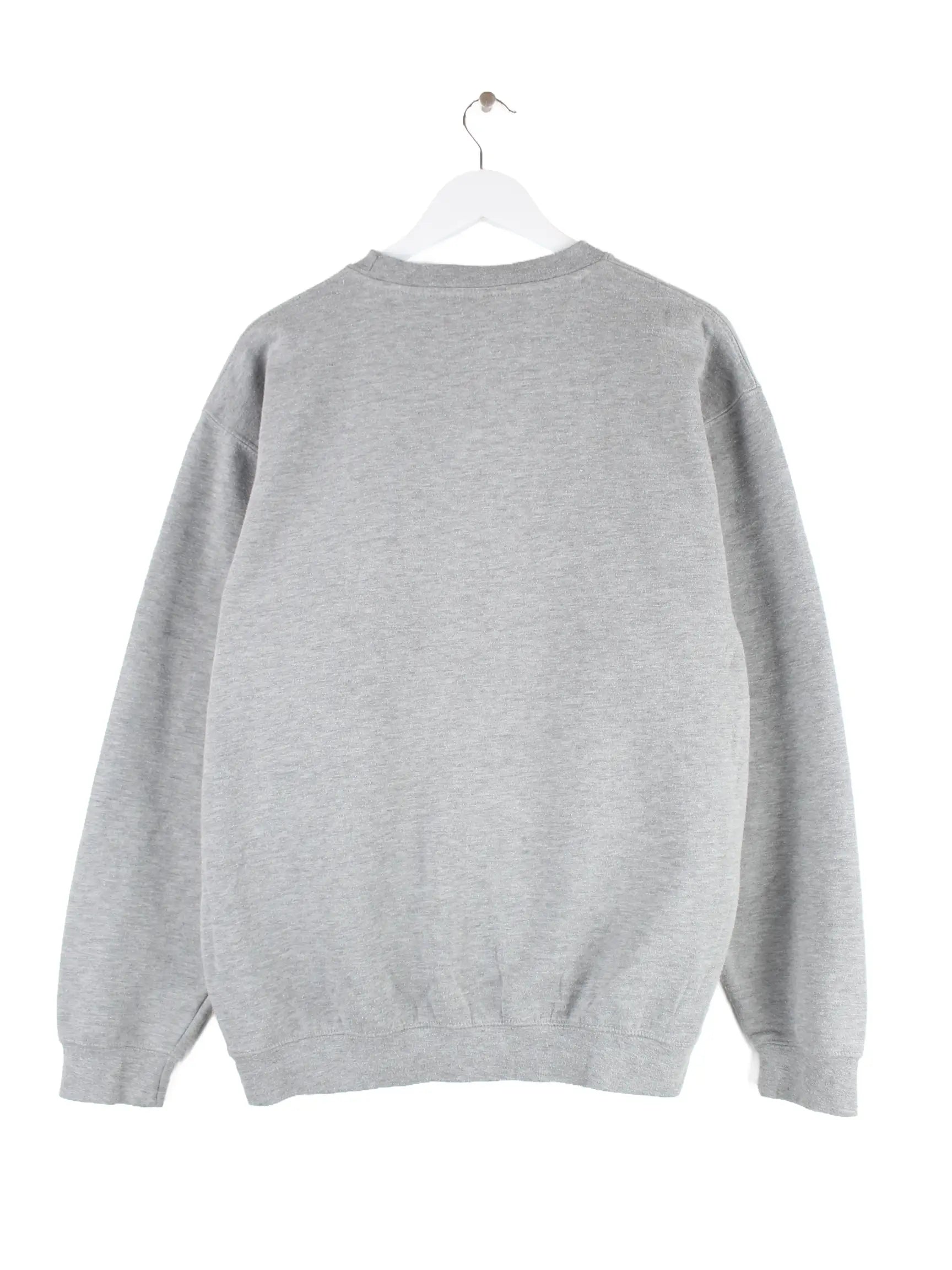 Vintage Sweater in Größe M. Er ist aus einer Baumwollmischung gemacht und in Grau im Bestand.