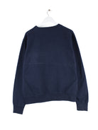 Vintage Sweater in Größe S. Er ist aus einer Baumwollmischung hergestellt und in Blau vorrätig. Mit chiquem State Print.