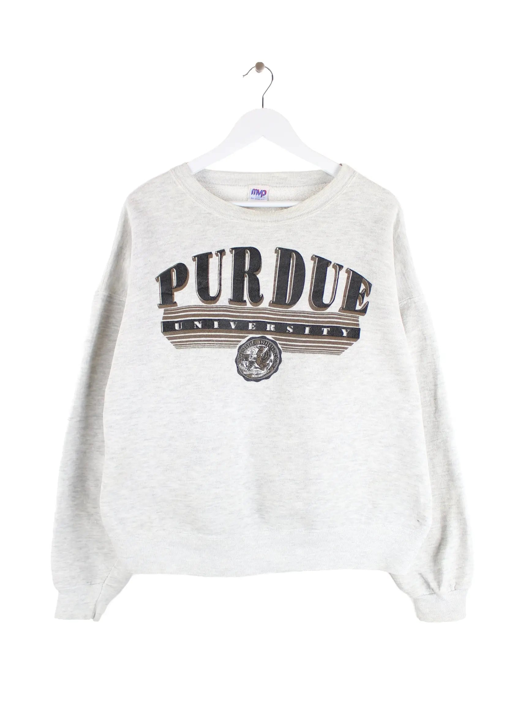 Vintage Damen 90s Purdue Print Sweater Grau XL
