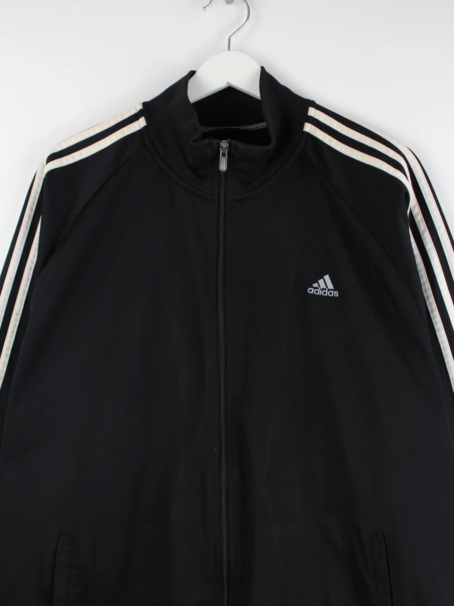 Trainingsjacke aus dem Hause Adidas in Größe XL. Sie ist aus Synthetik gefertigt und in Schwarz im Angebot.