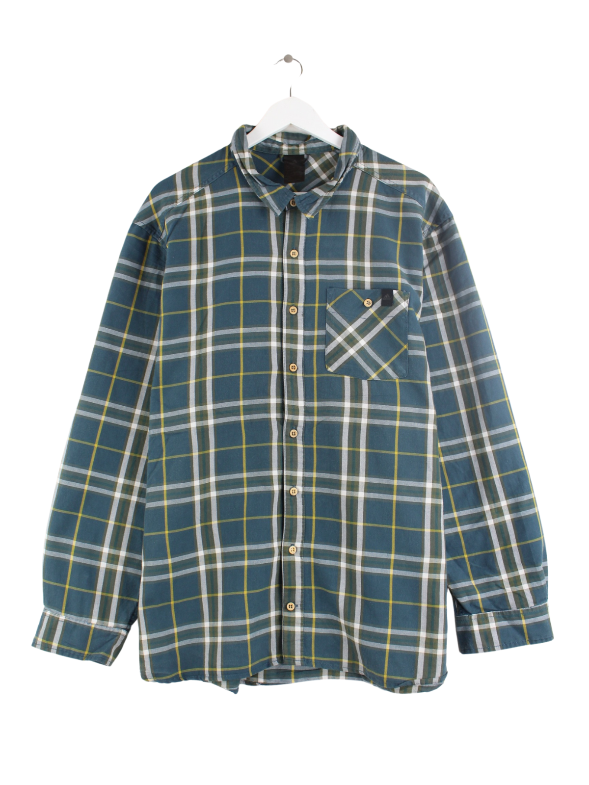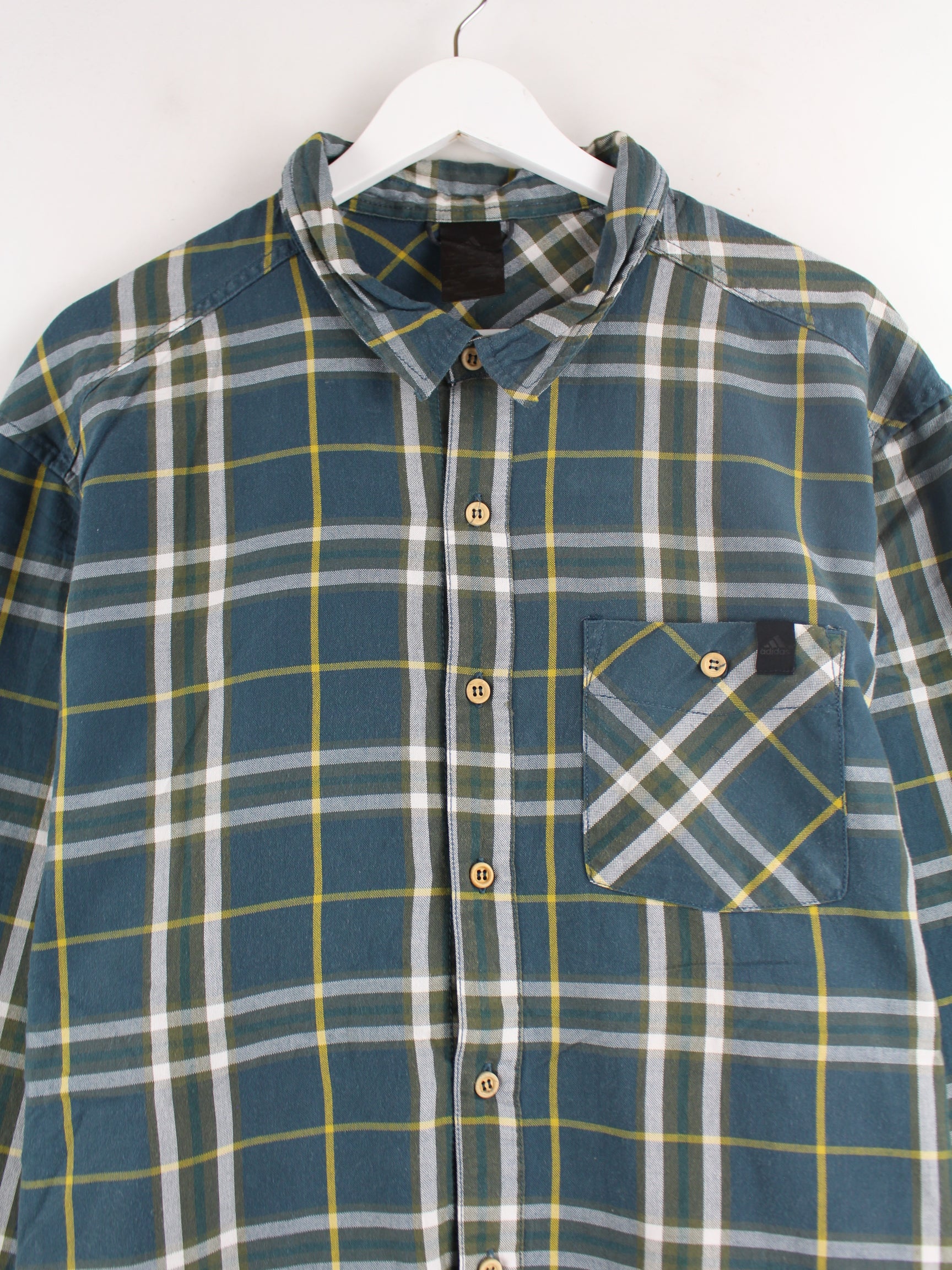 Freizeit Hemd der Marke Adidas in Größe XXL. Es ist aus Baumwolle produziert und in Blau in Stock.