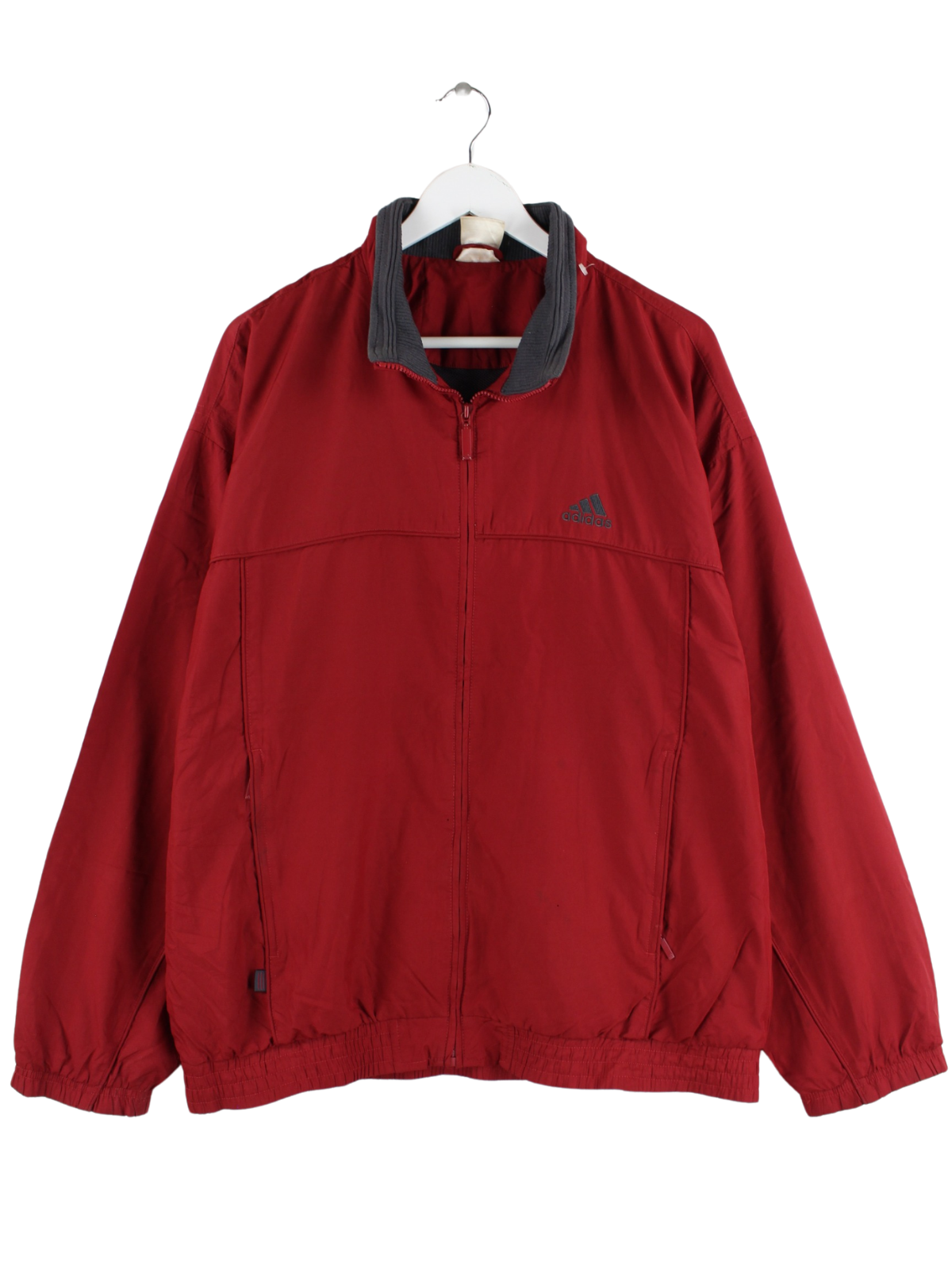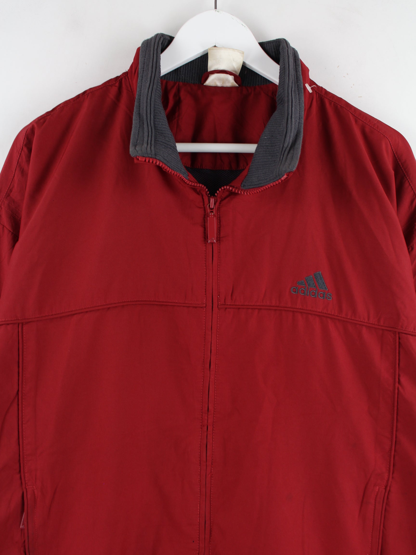 Rote Trainingsjacke vom Label Adidas in Größe XL. Sie ist aus Synthetik angefertigt und in gutem Zustand bei uns zu bekommen.