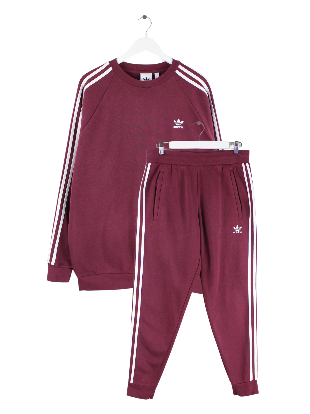 Roter Trainingsanzug der Marke Adidas in Größe L. Er ist aus einer Baumwollmischung und in gutem Zustand auf Lager.