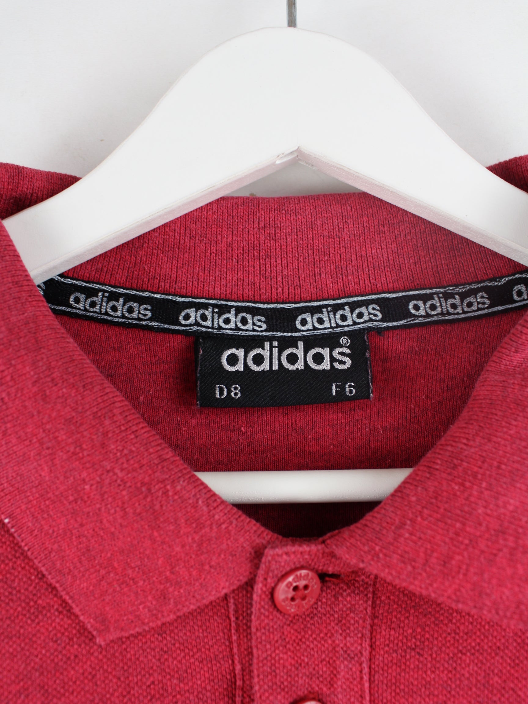 Poloshirt des Labels Adidas mit Stickereien in Größe XXL aus den 90'ern. Es ist aus Baumwolle gefertigt und in Rot lieferbar.