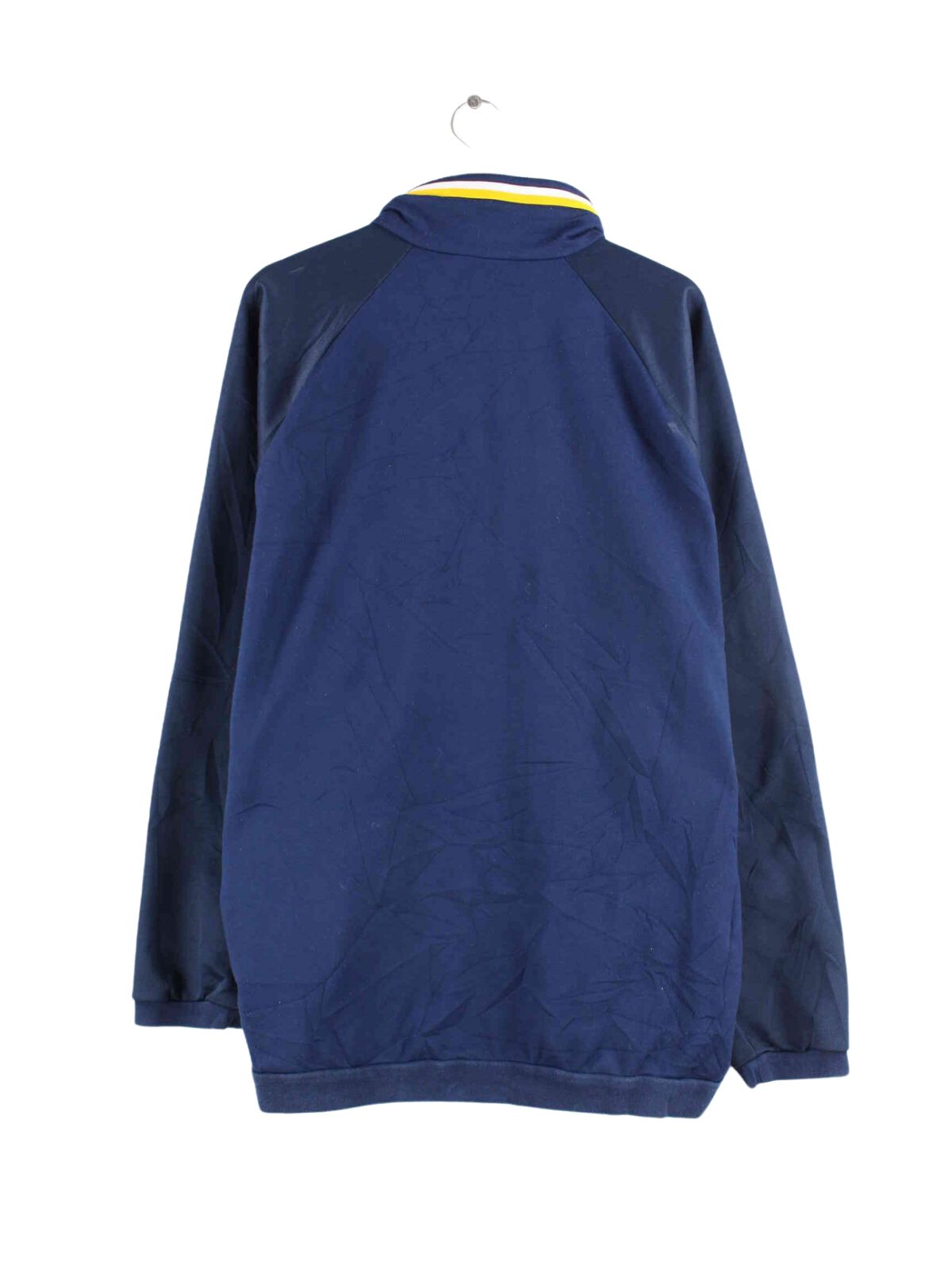 Sweater von Adidas mit kurzem Reißverschluß in Größe XXL. Er ist aus Synthetik produziert und in Blau bei uns zu bekommen.