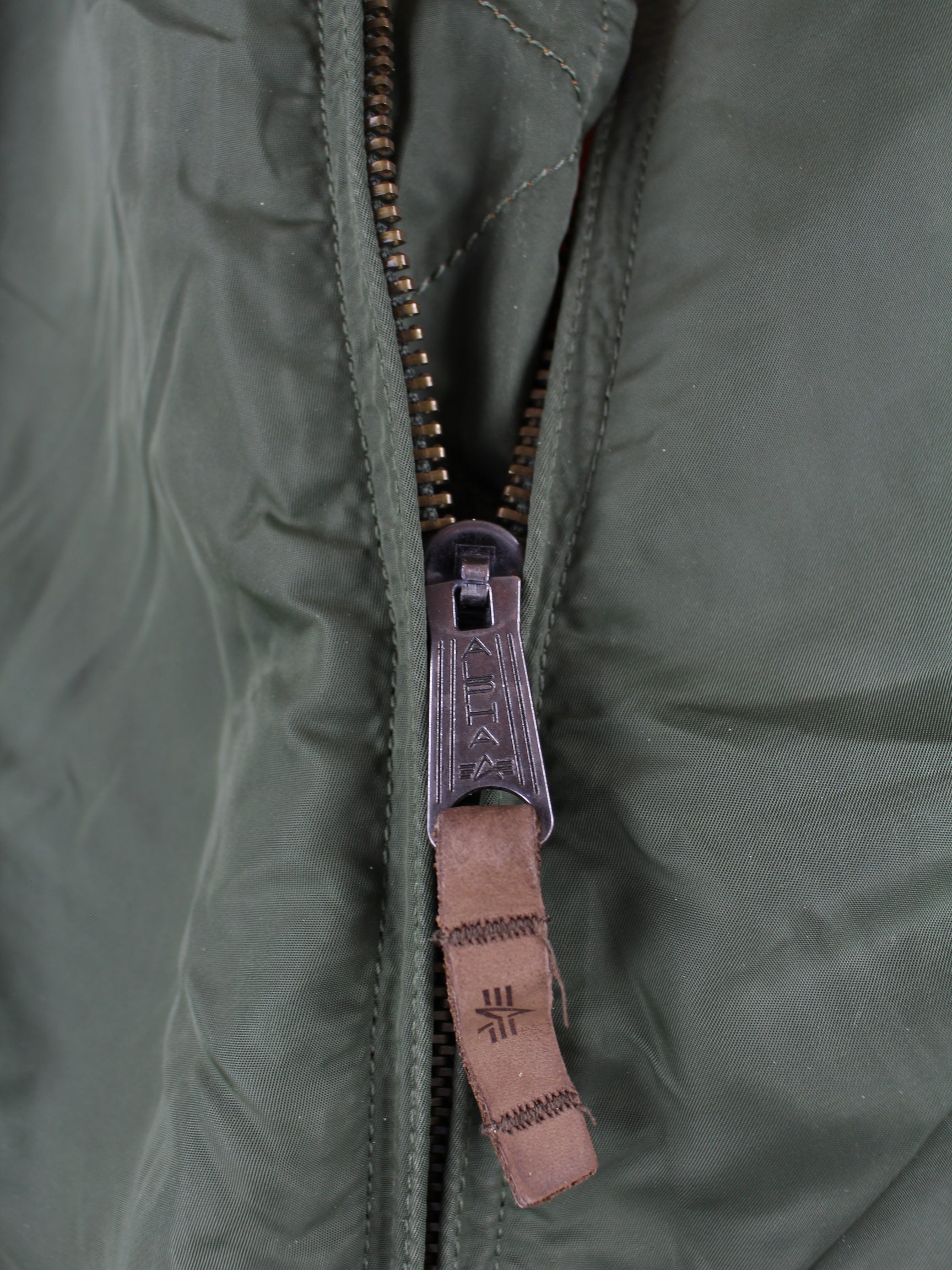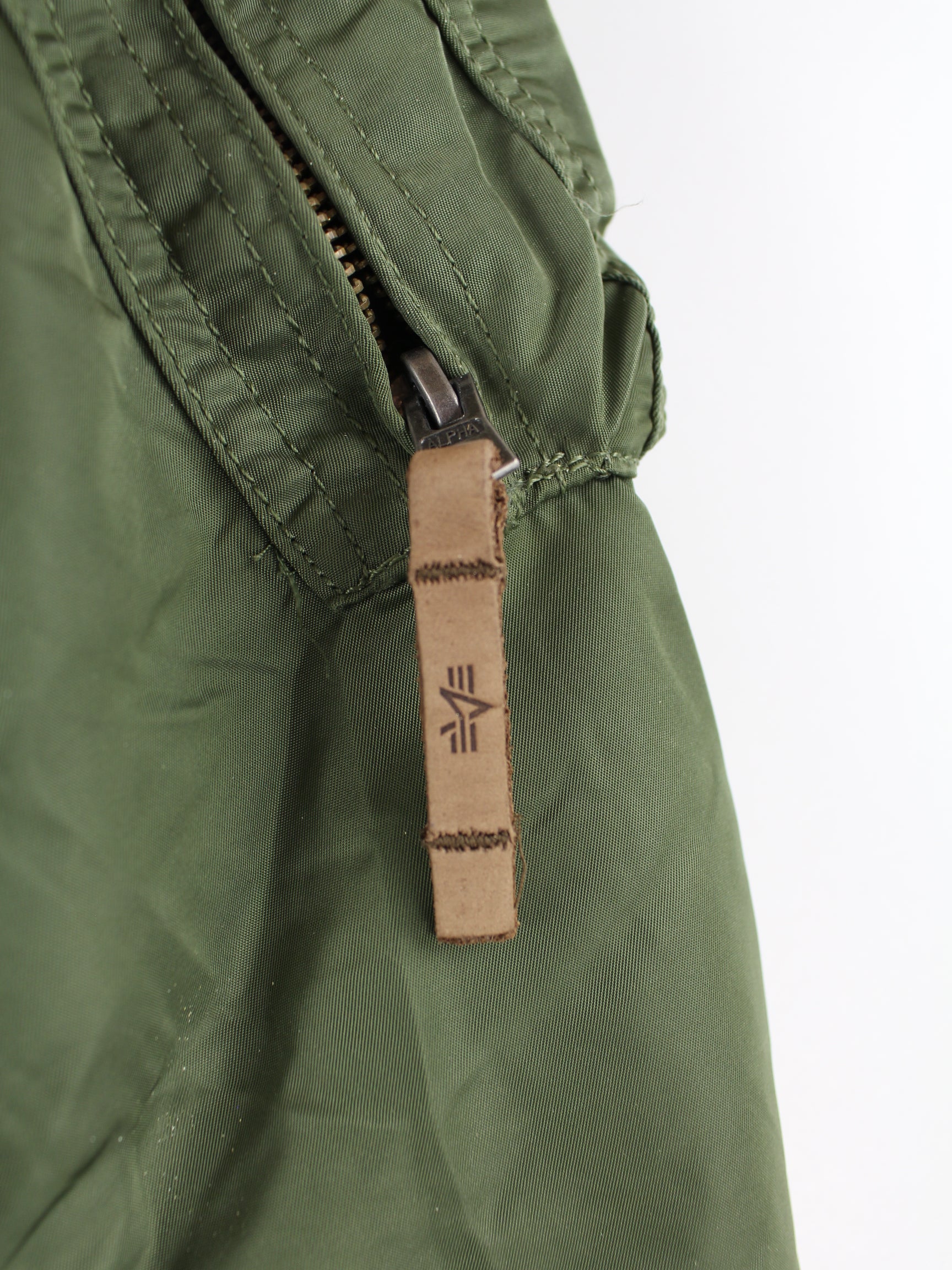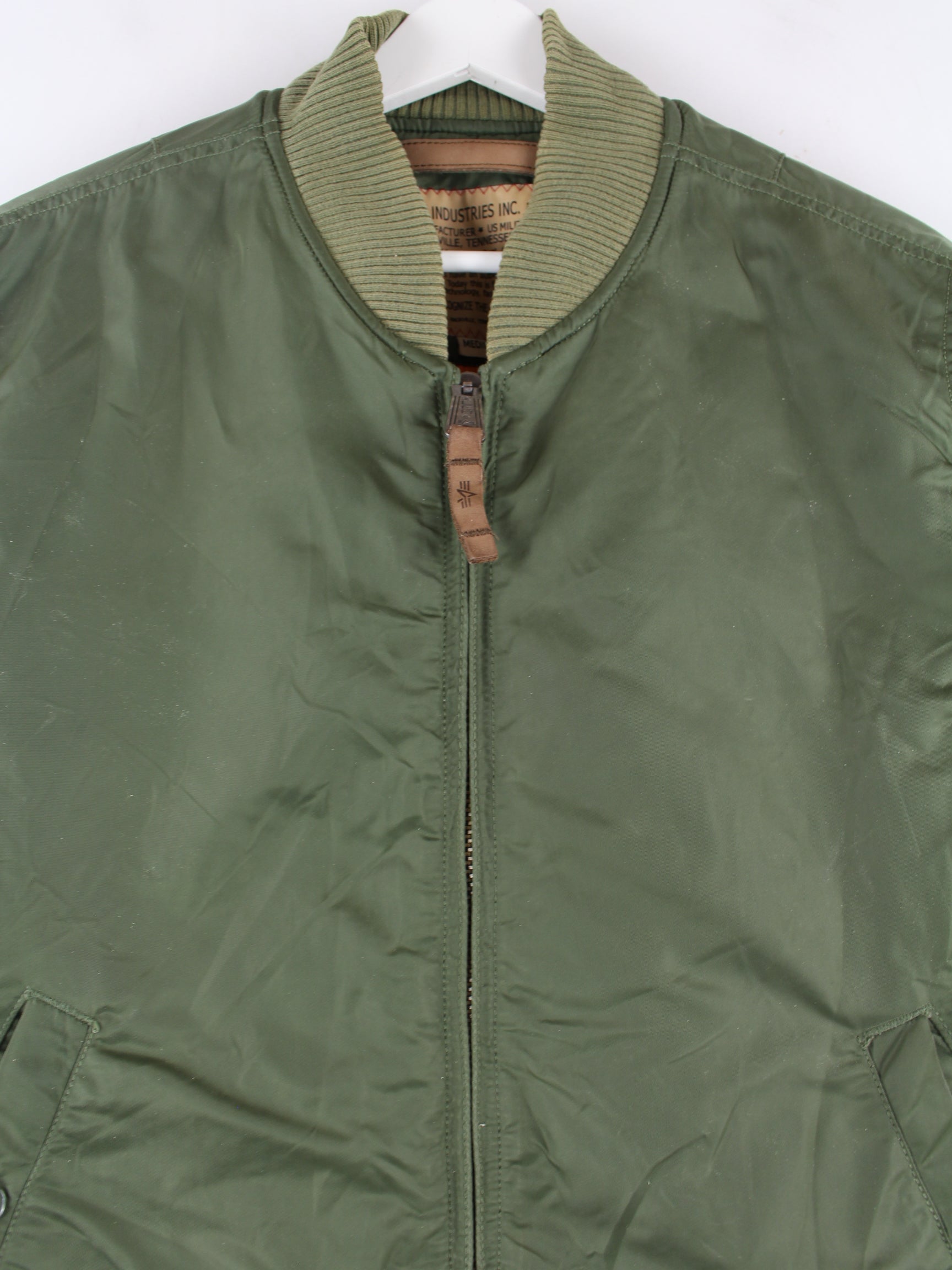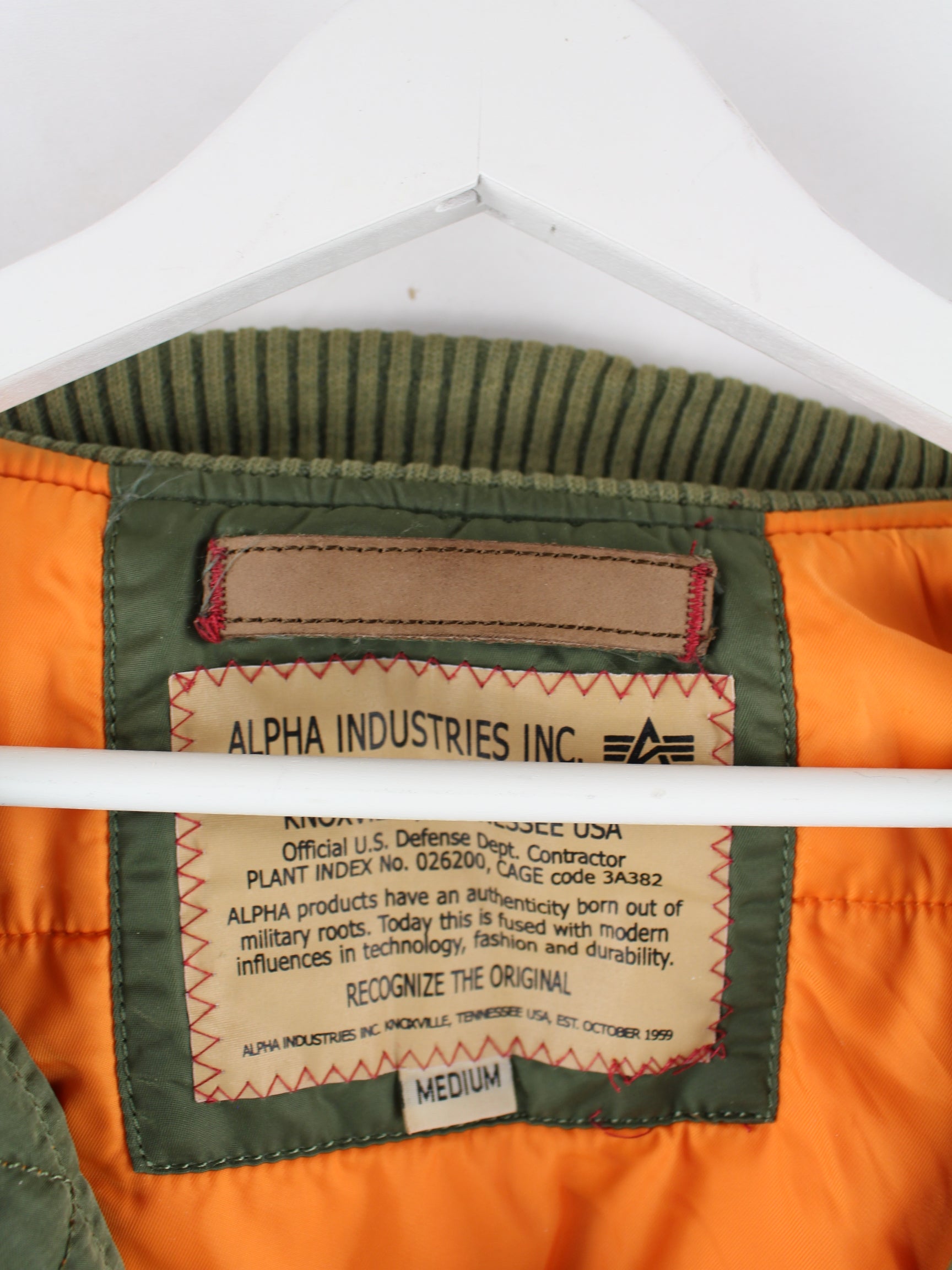 Jacke vom Label Alpha Industries in Größe M. Sie ist aus Synthetik produziert und in Grün im Bestand.