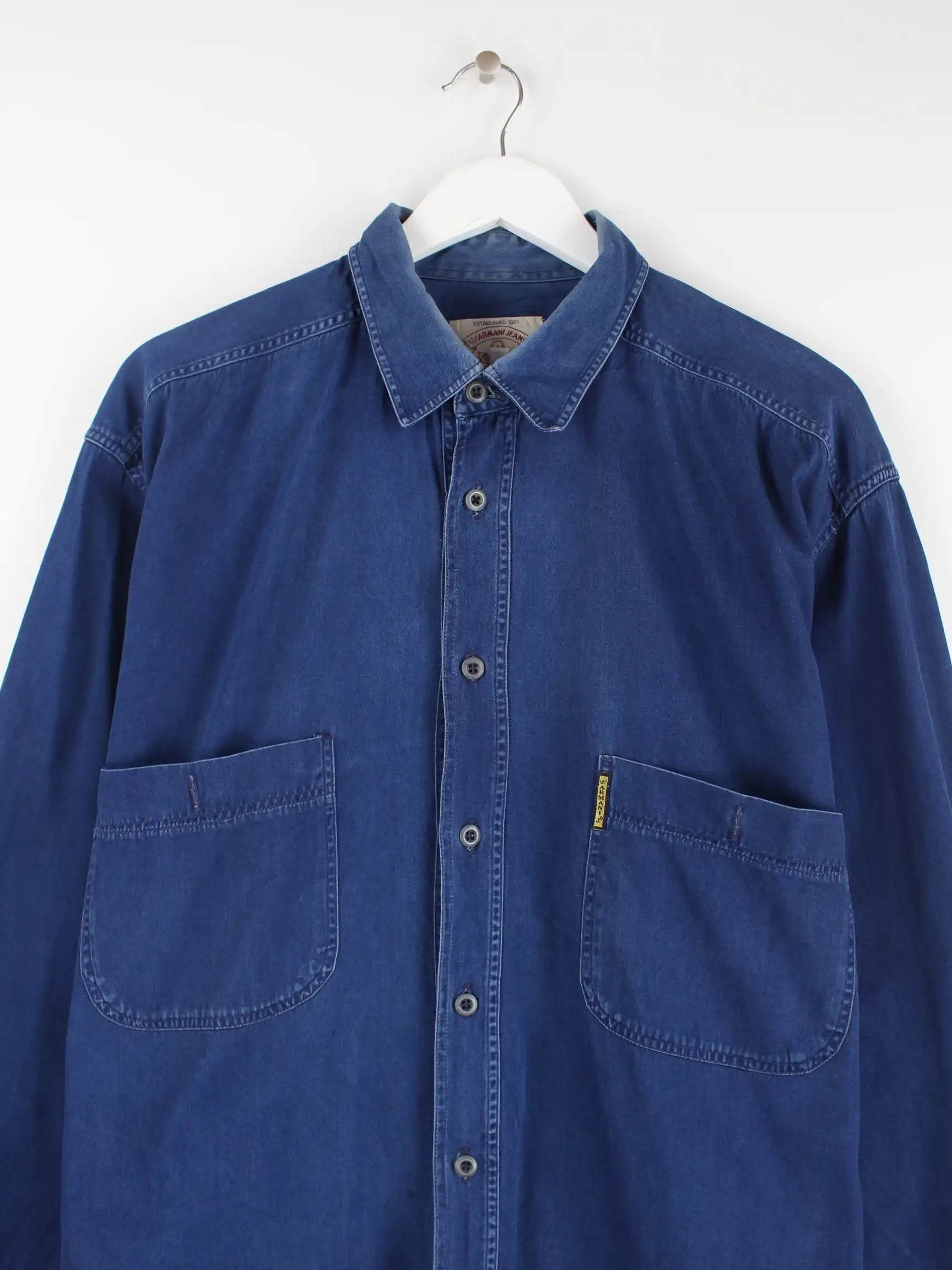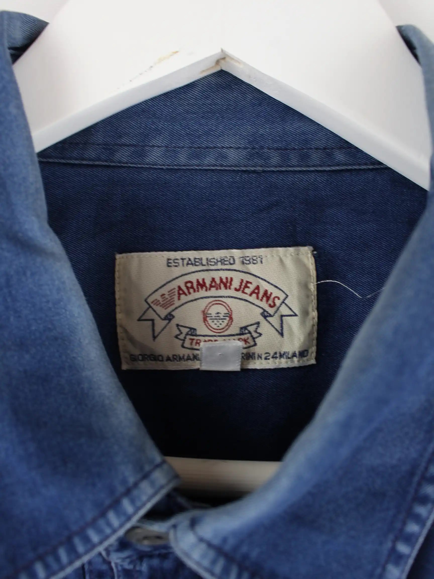 Freizeit Hemd aus dem Hause Armani in Größe XL aus den 90'ern. Es ist aus Baumwolle produziert und in Blau im Bestand.