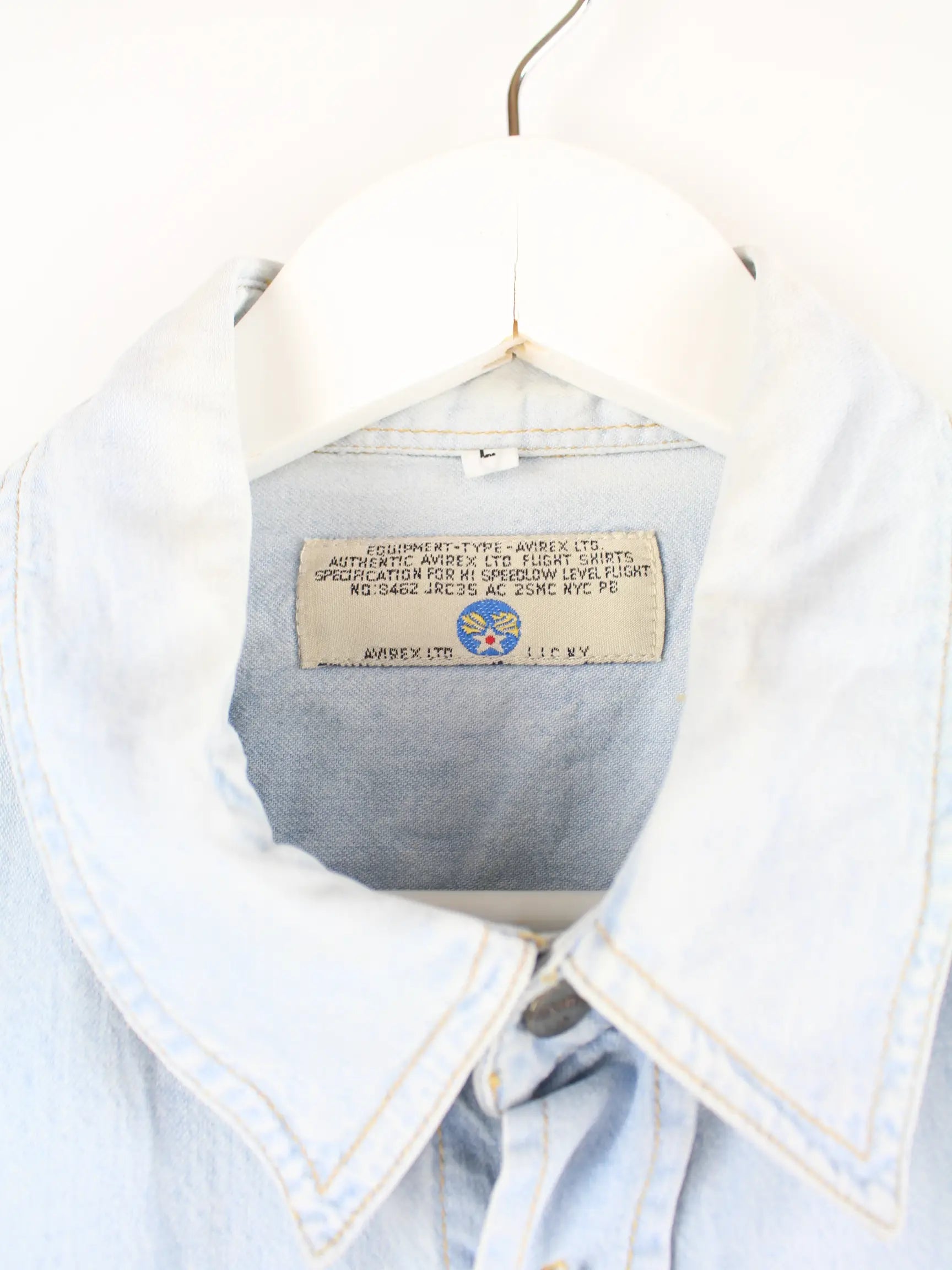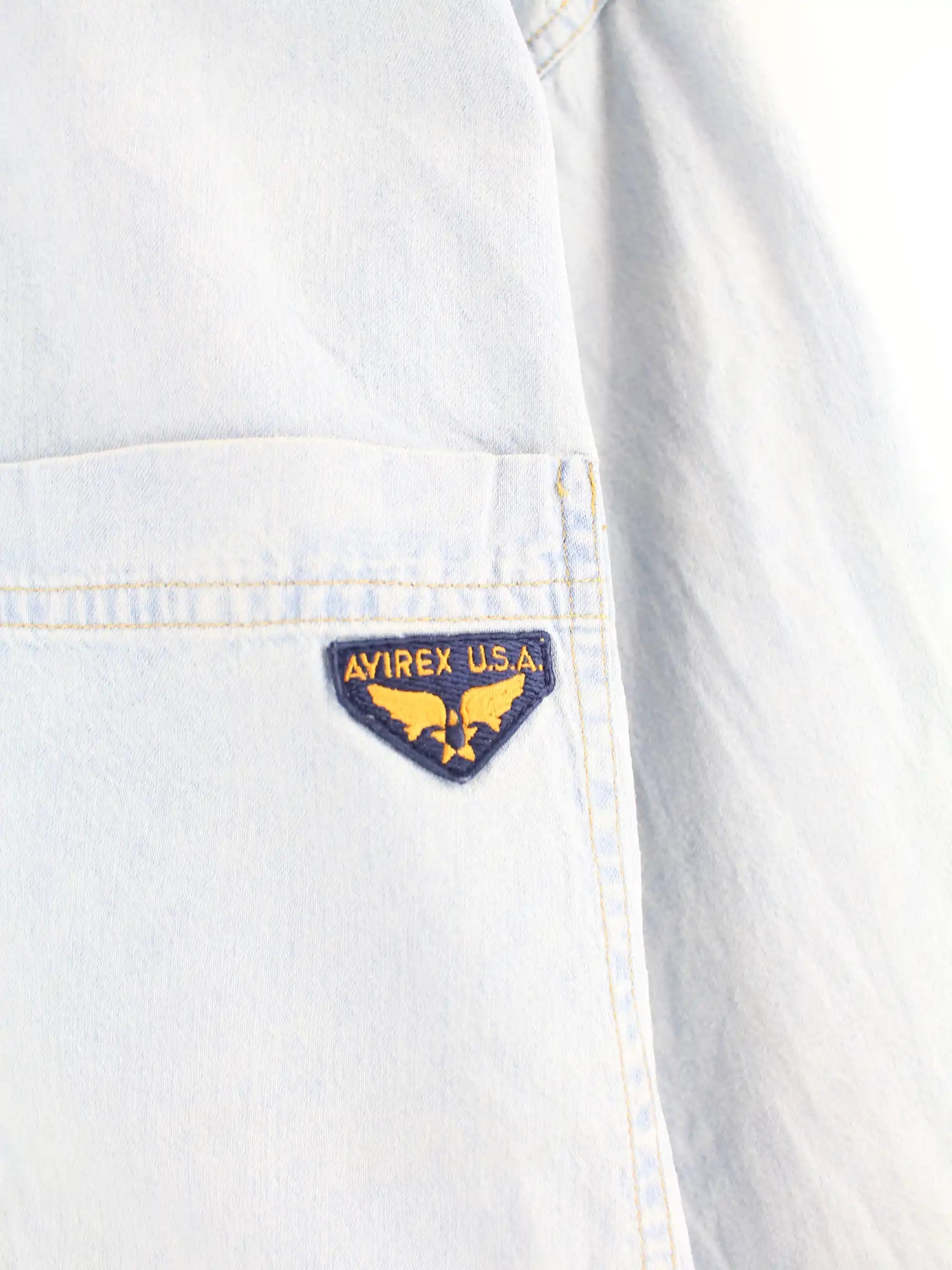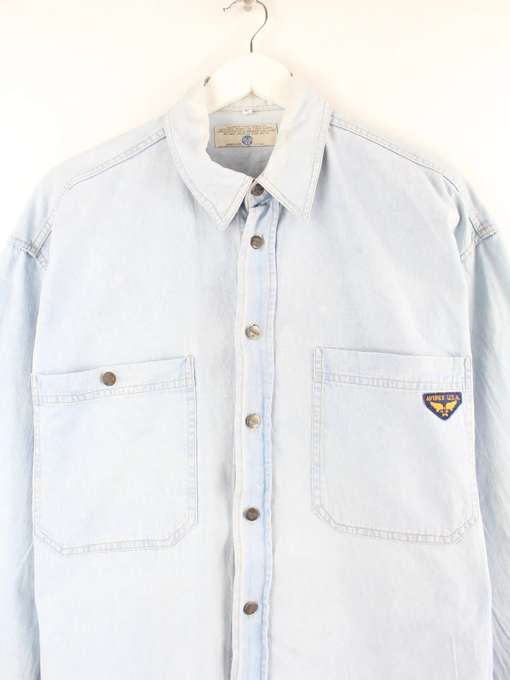 Freizeit Hemd der Brand Avirex in Größe L aus den 90'ern. Es ist aus Baumwolle und in Blau vorrätig.