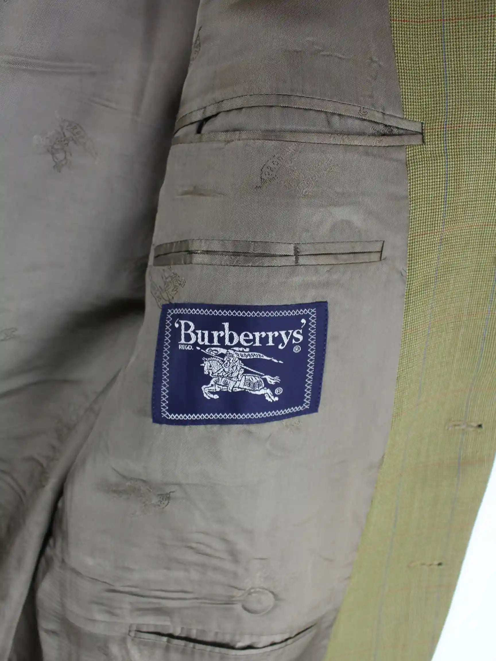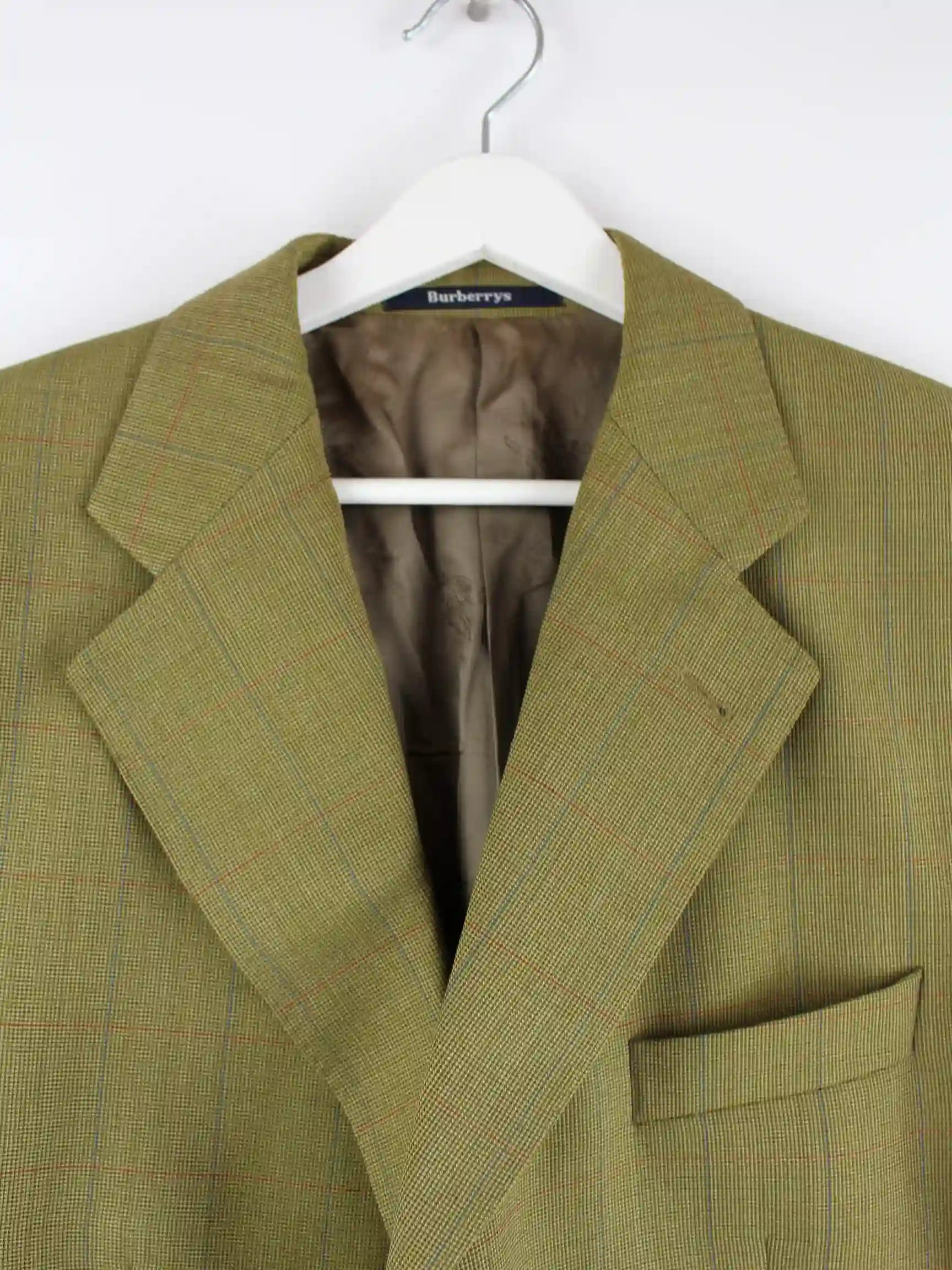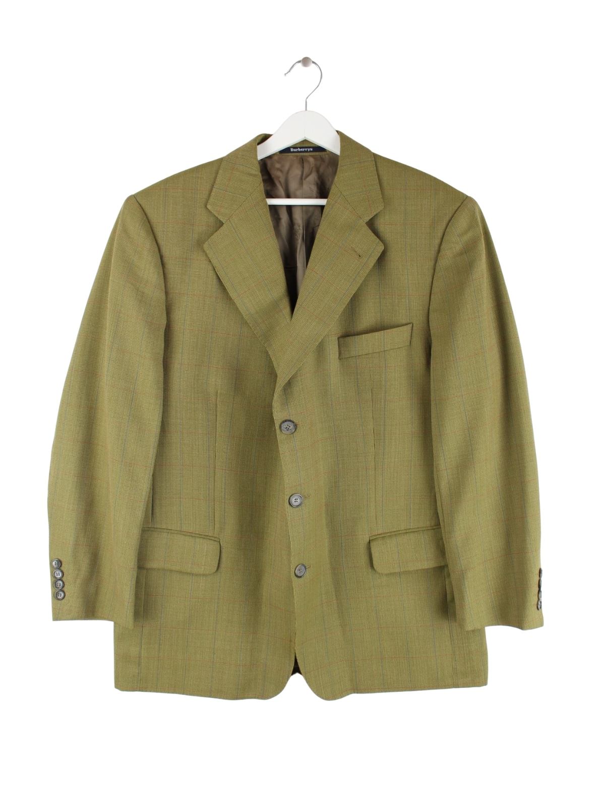 Grüner Blazer der Marke Burberry aus den 80'ern in Größe L. Er ist aus Wolle und in sehr gutem Zustand in Stock.