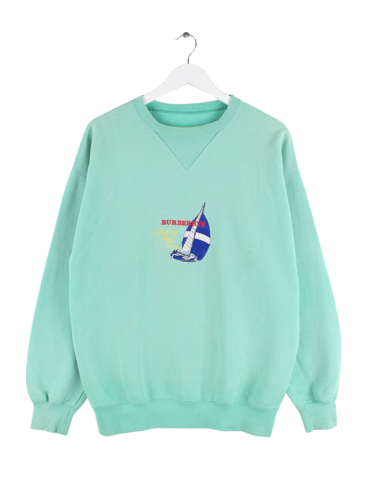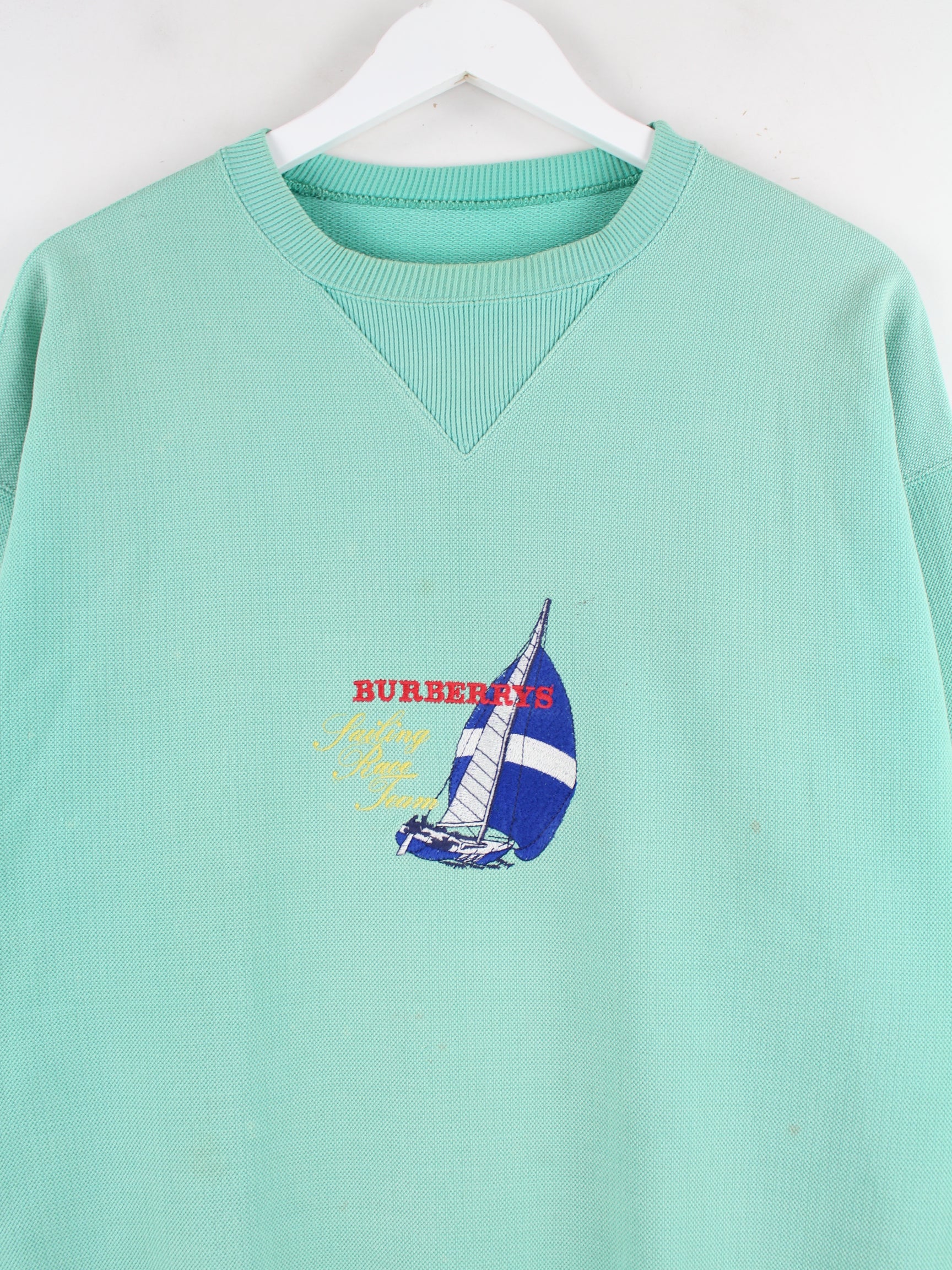 Burberry 80s Vintage Embroidered Sweater Türkis M