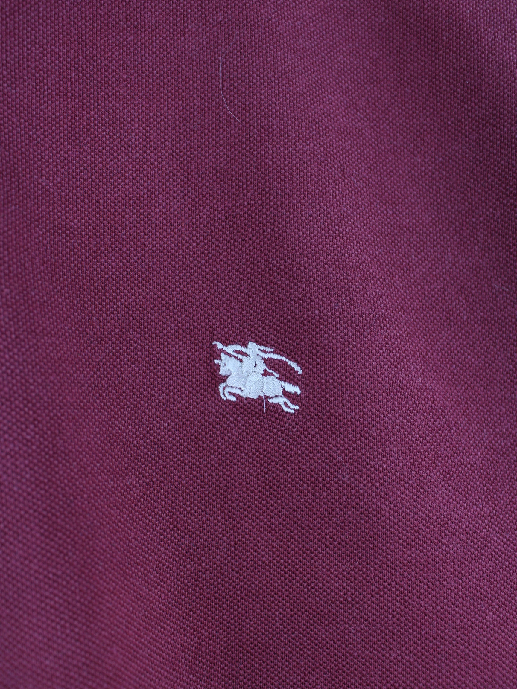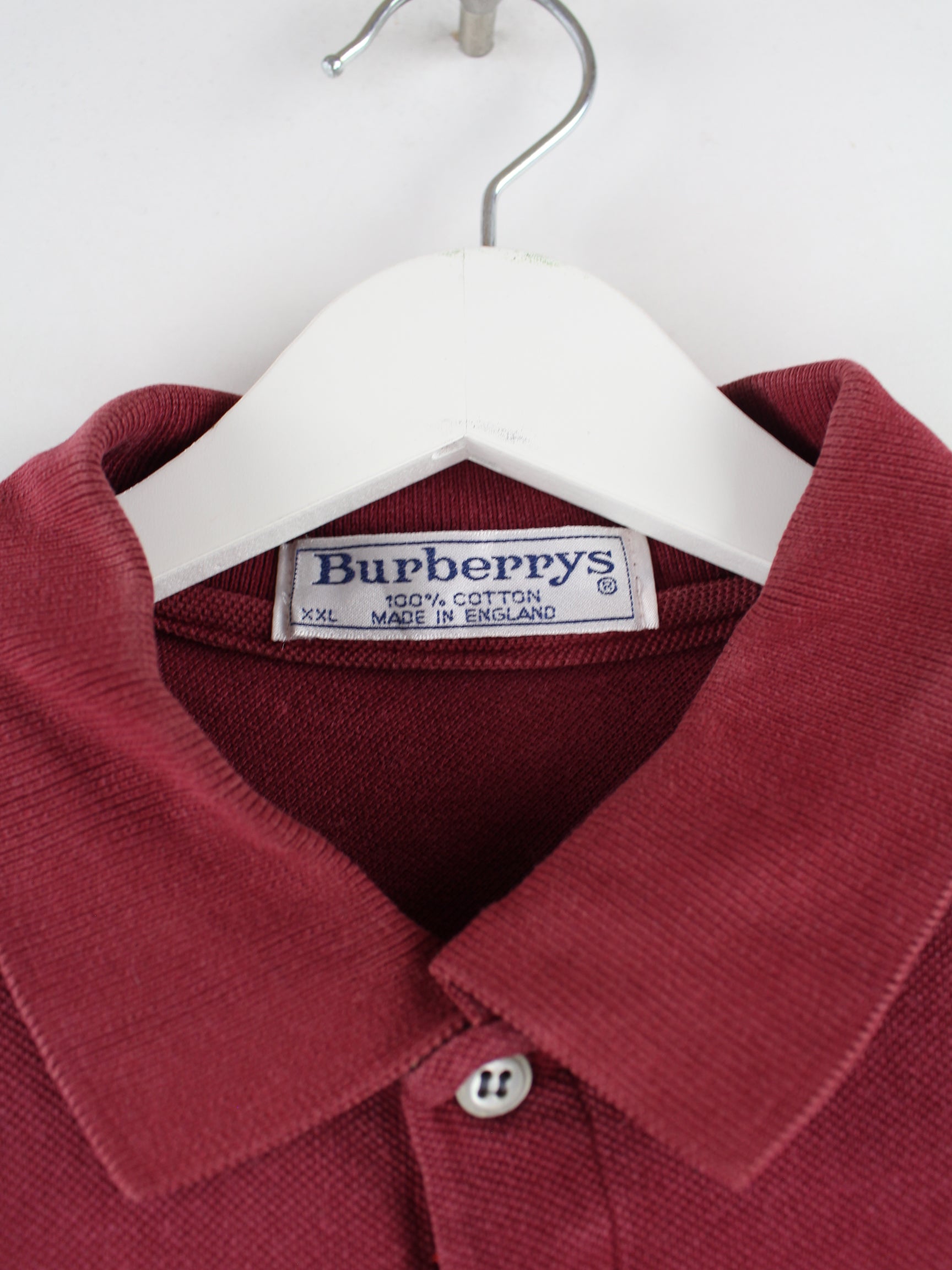 Rotes Poloshirt vom Brand Burberry aus den 80'ern in Größe L. Es ist aus Baumwolle und in sehr gutem Zustand lieferbar.