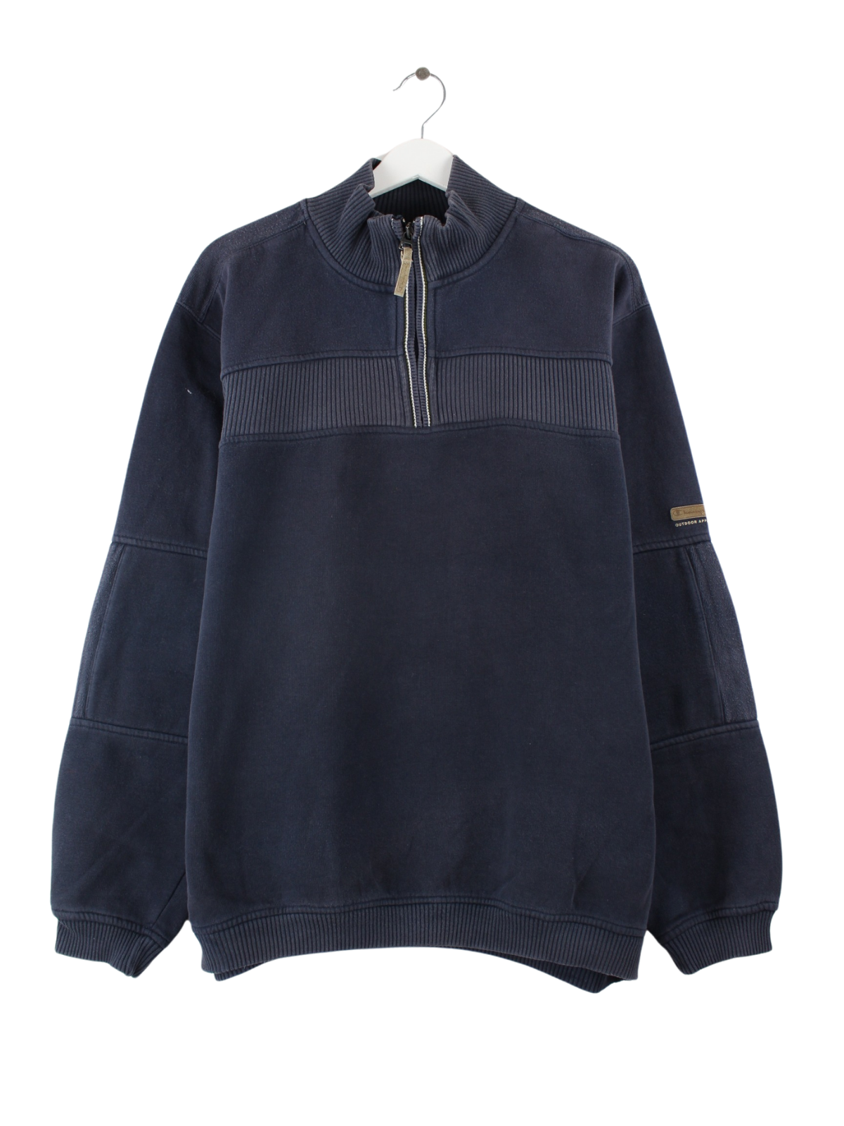 Sweater der Brand Champion mit halbem Reißverschluß in Größe XXL. Er ist aus einer Baumwollmischung gemacht und in Blau lieferbar.