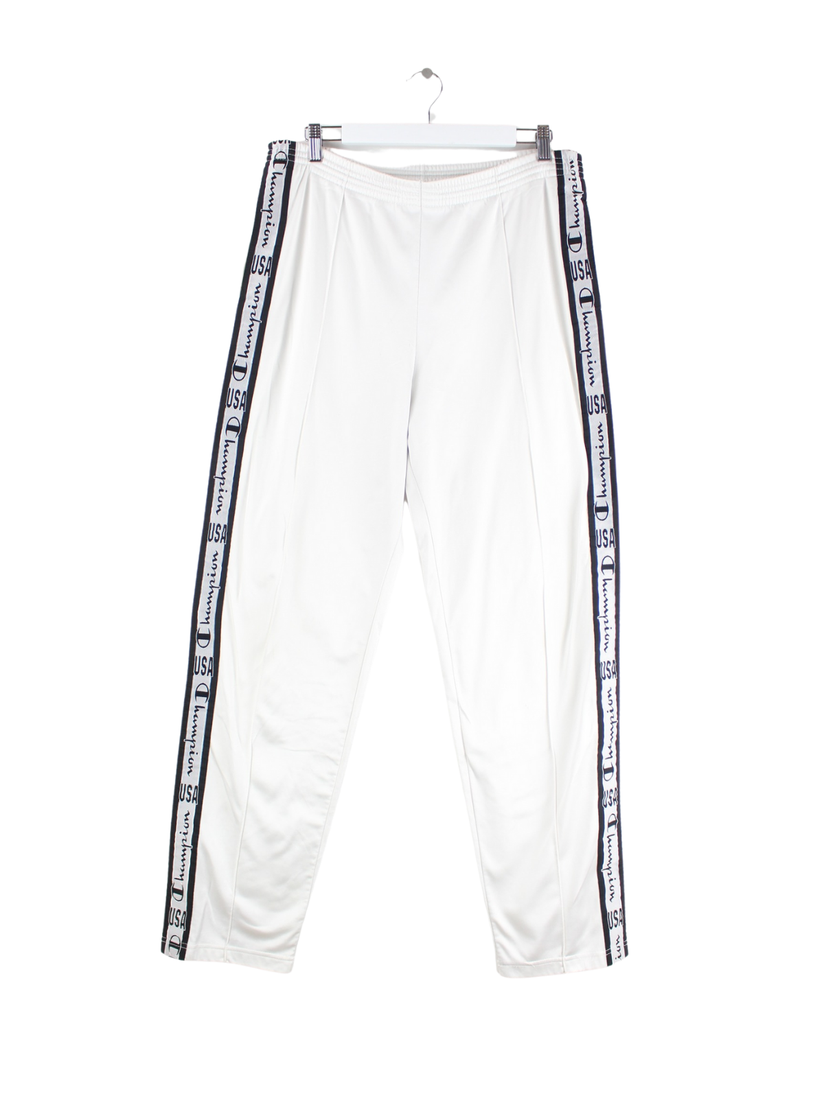Weiße Track Pants vom Brand Champion in Größe XL. Sie sind aus Synthetik hergestellt und in gutem Zustand auf Lager.