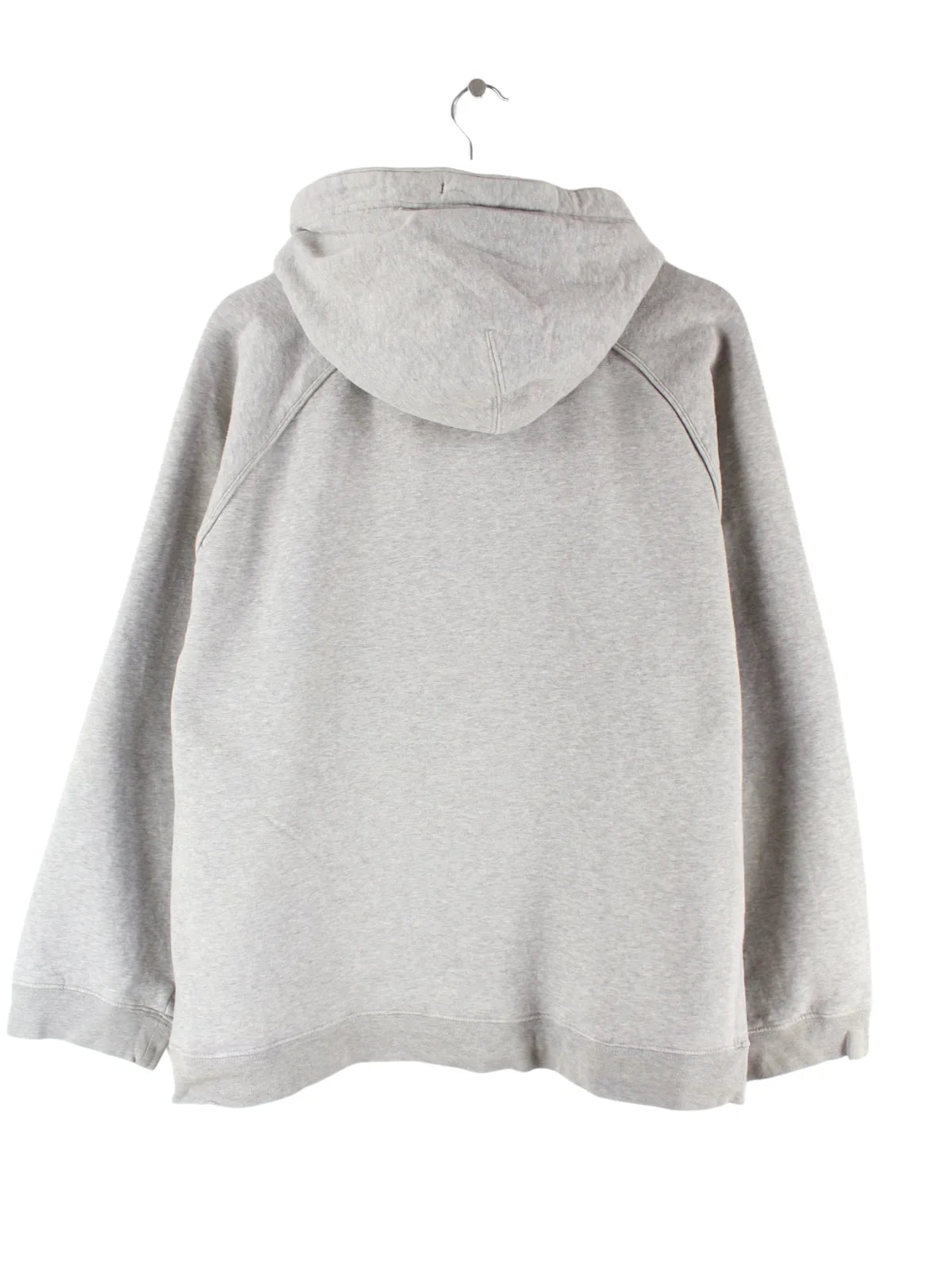 Hoodie von Champion mit gestickten Motiven und Reißverschluß in Größe L. Er ist aus einer Baumwollmischung gefertigt und in Grau bei uns zu bekommen.