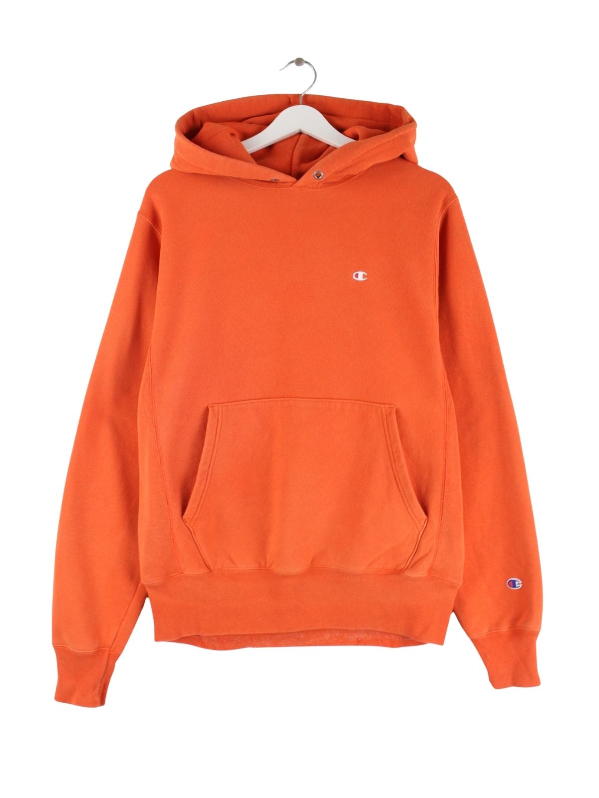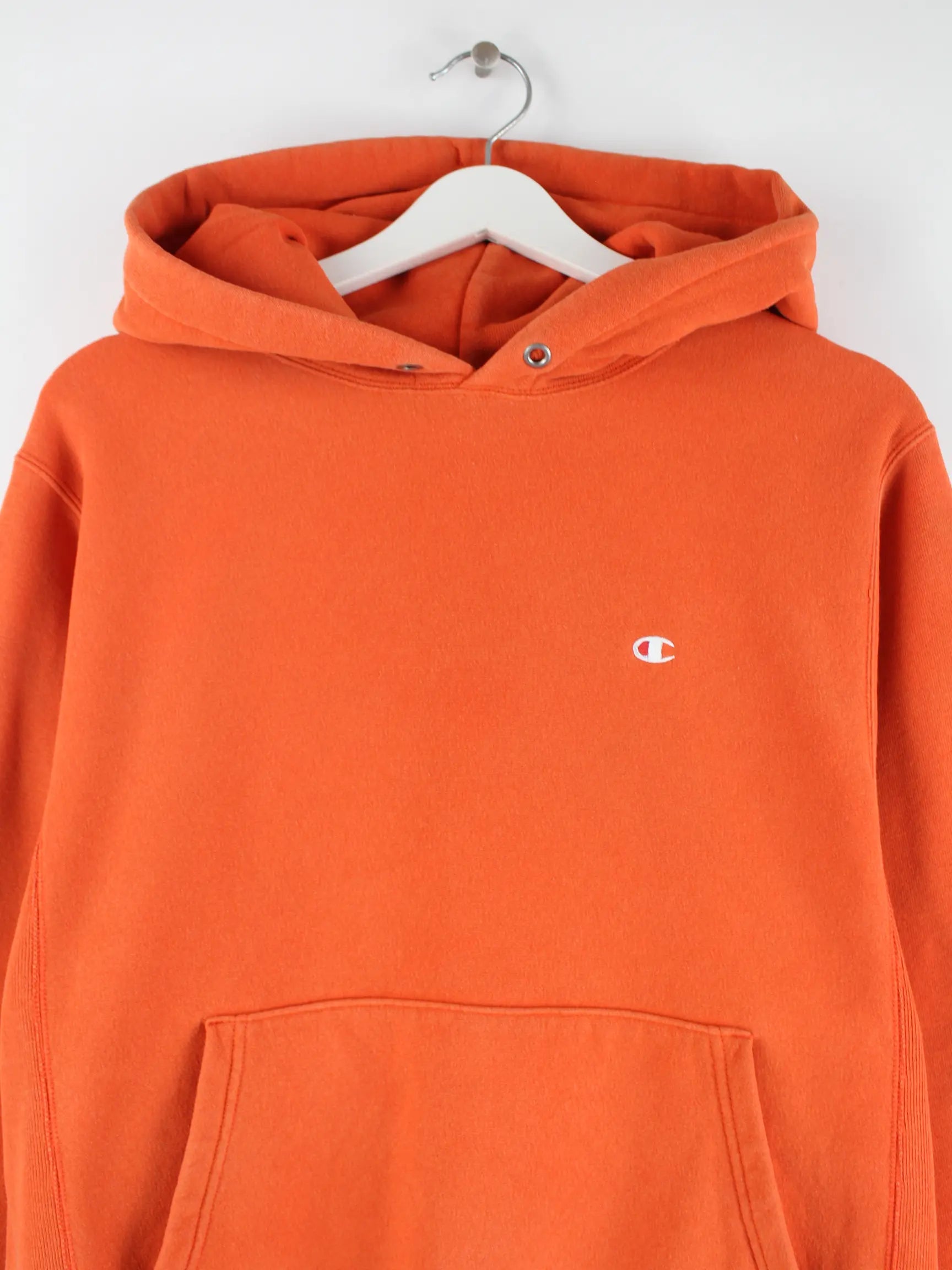 Orangefarbener Hoodie des Labels Champion in Größe S. Er ist aus einer Baumwollmischung gefertigt und in gutem Zustand im Angebot.