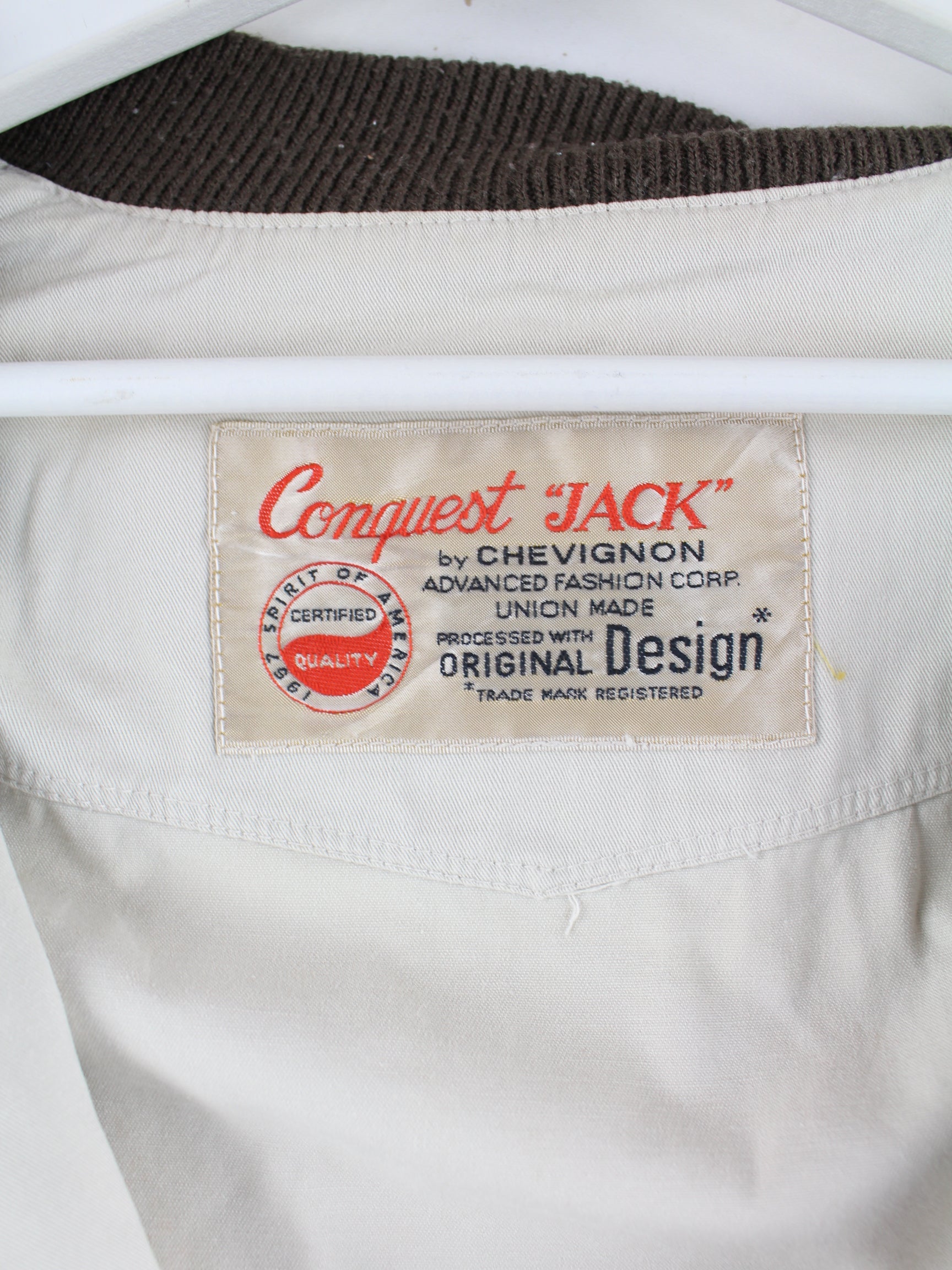 Beigefarbene Leichte Jacke vom Label Chevignon aus den 90'ern in Größe XS. Sie ist aus einer Baumwollmischung hergestellt und in sehr gutem Zustand im Bestand. Mit schickem Vintage Print.