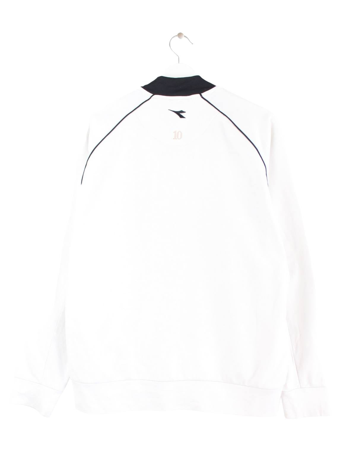 Weißes Trikot der Marke Diadora in Größe L. Es ist aus Synthetik gemacht und in gutem Zustand zu haben.