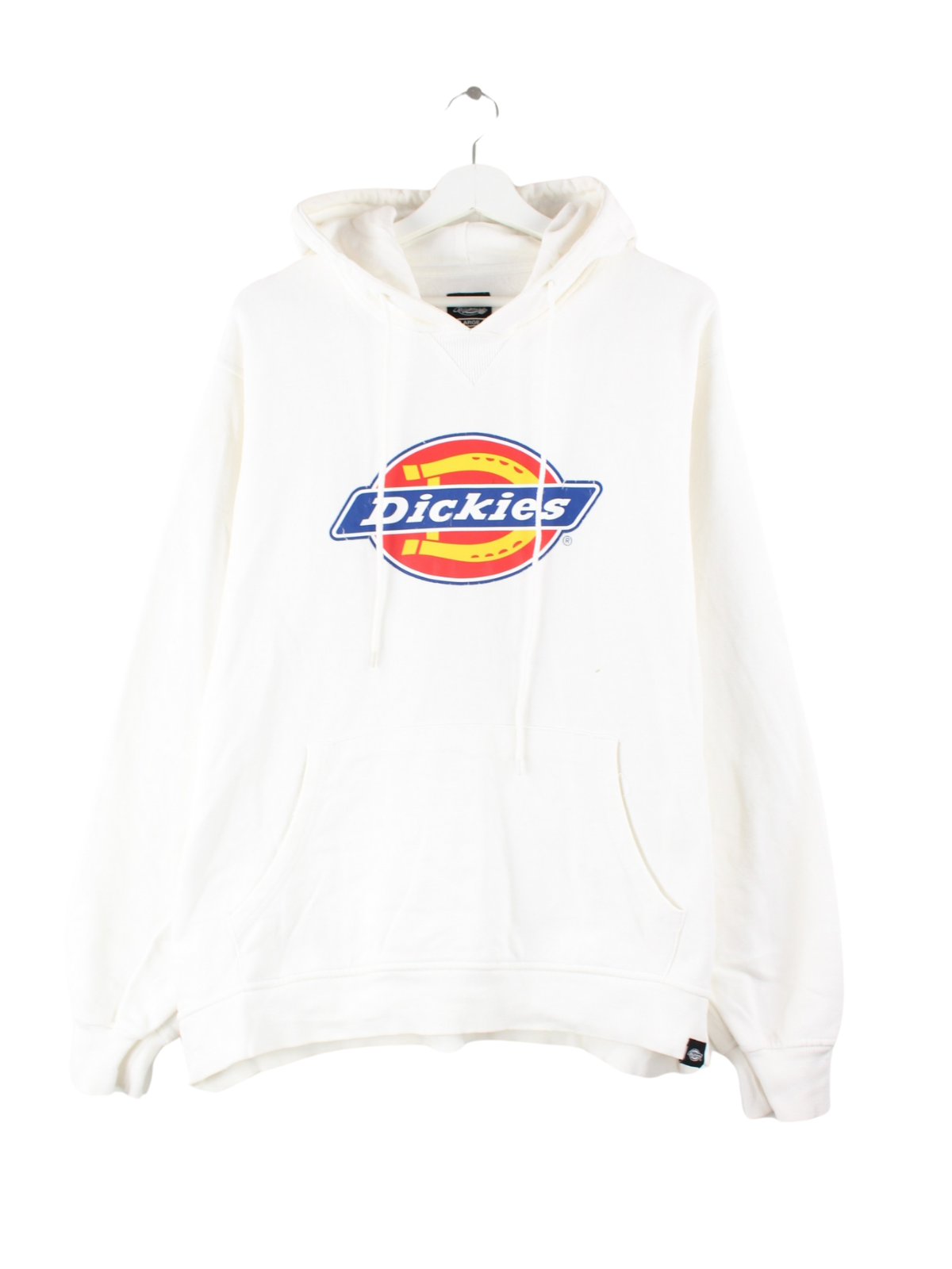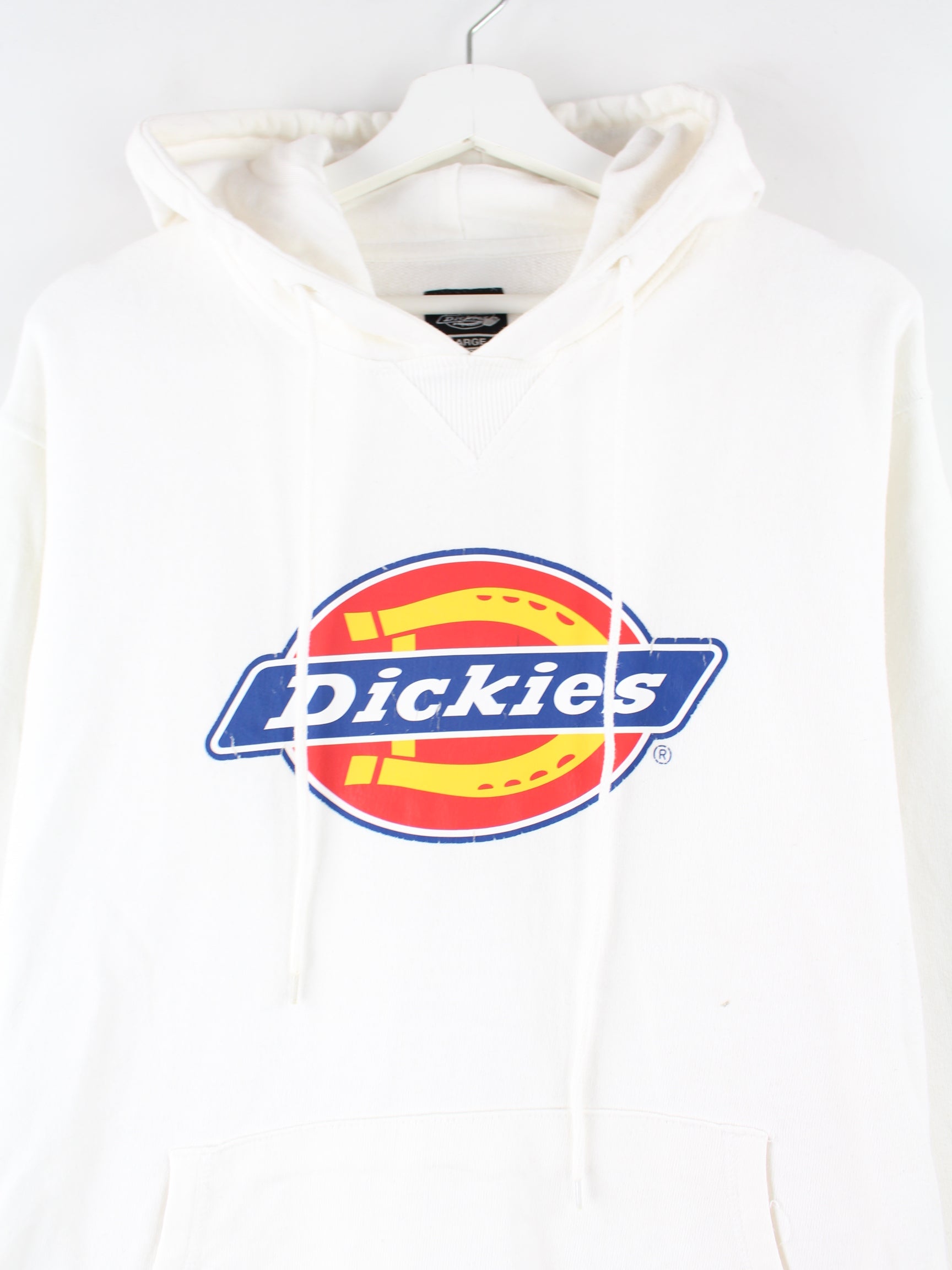 Hoodie vom Label Dickies in Größe L. Er ist aus einer Baumwollmischung hergestellt und in Weiß auf Lager. Mit seltenem Logo Print.