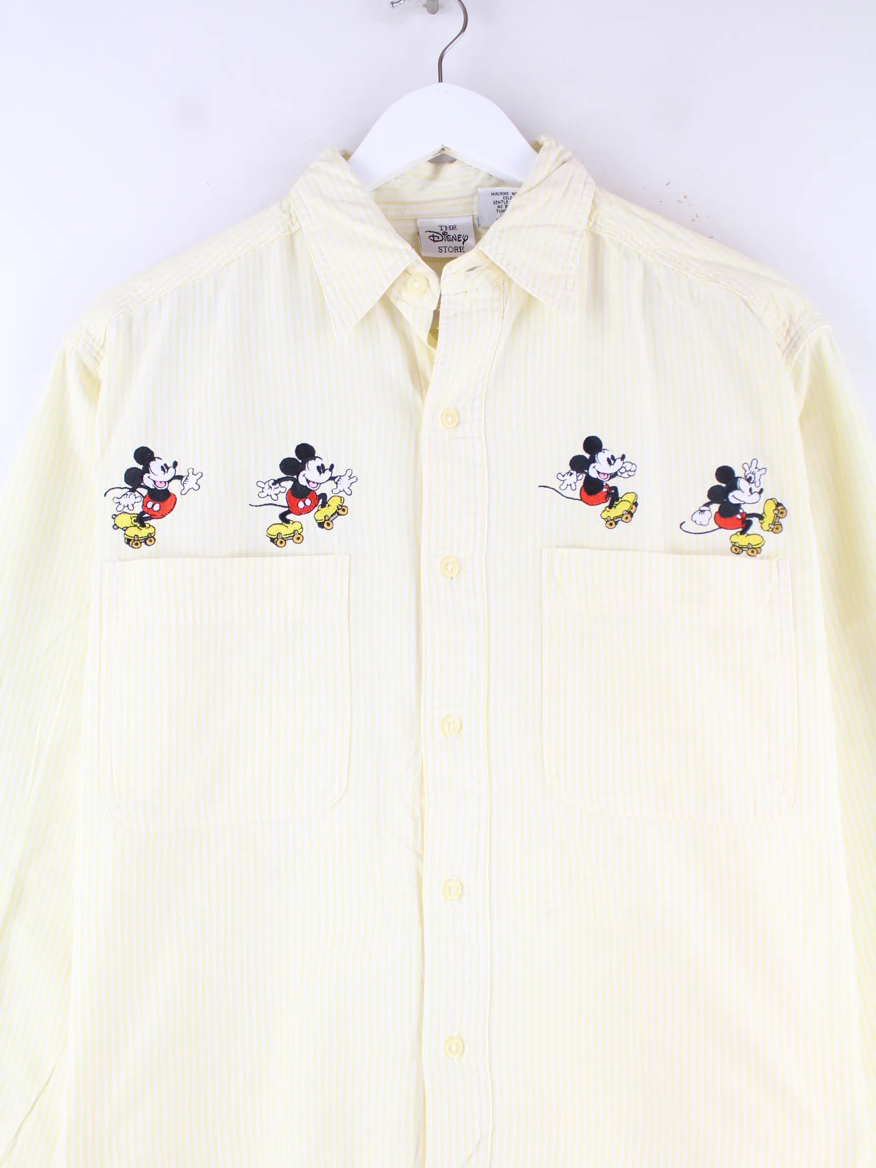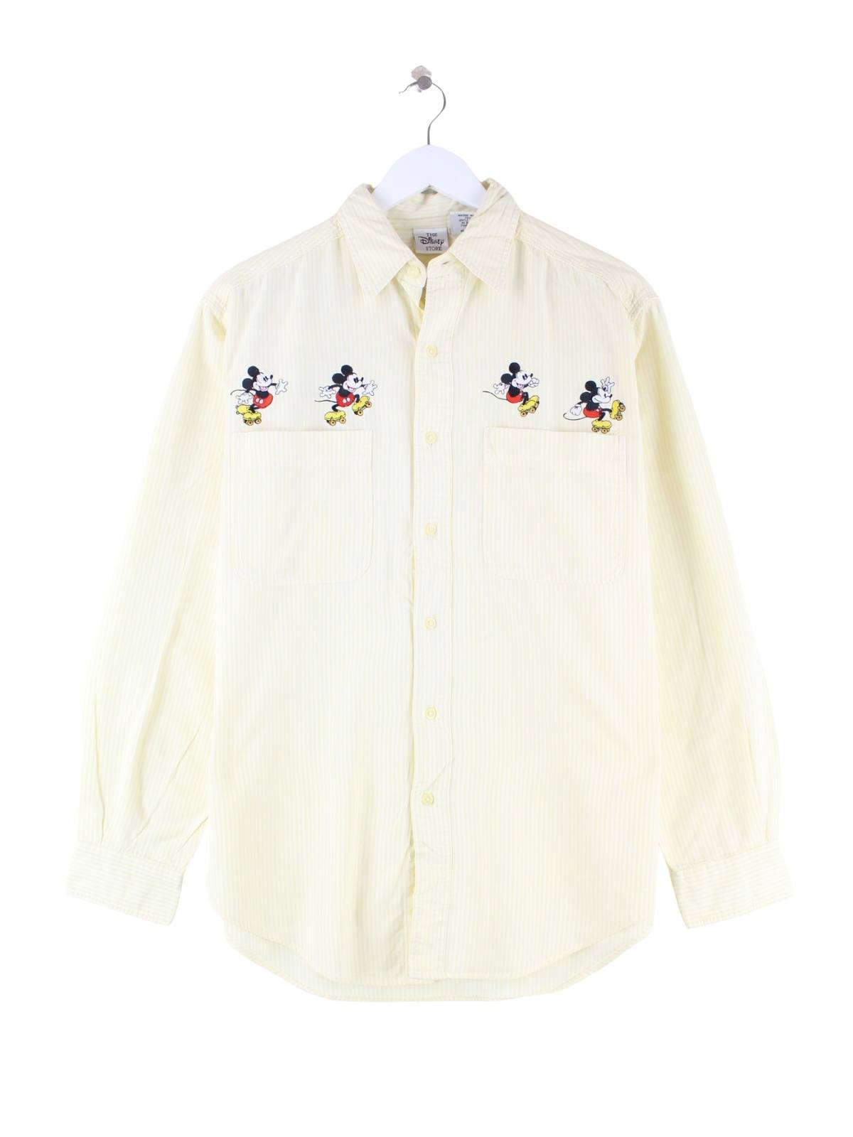 Disney 90s Vintage Mickey Mouse Embroidered Hemd Gelb S