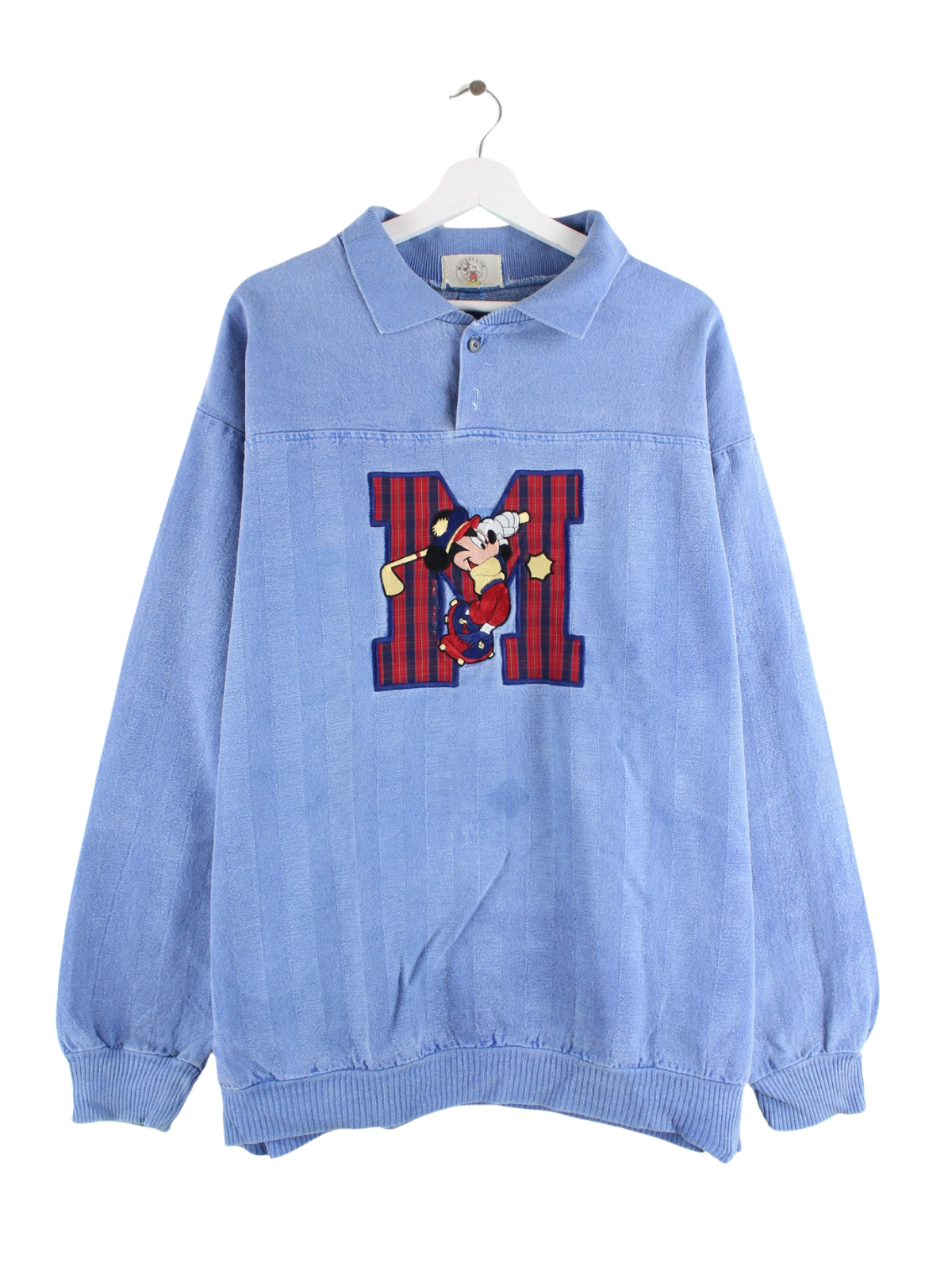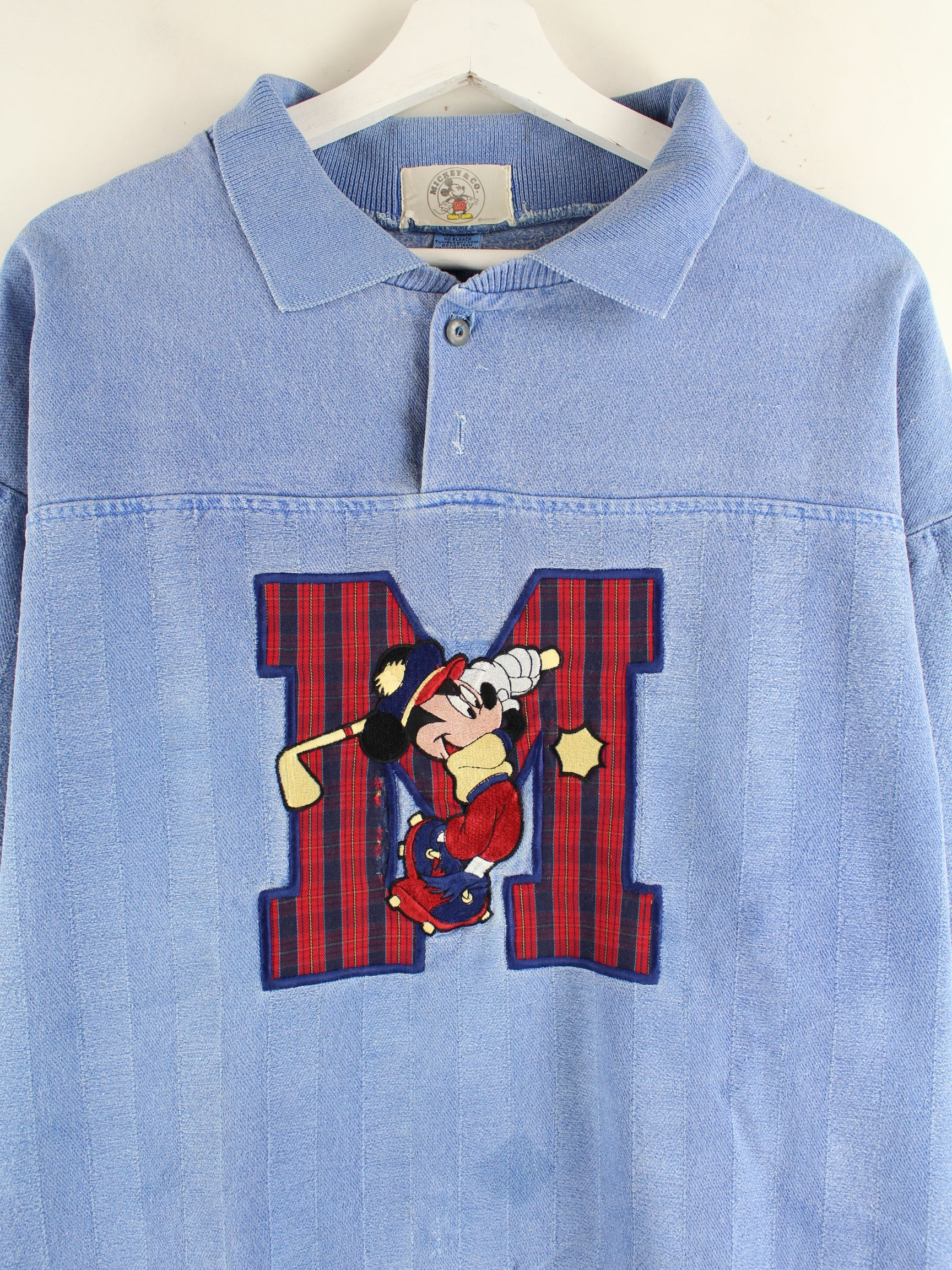 Disney 90s Vintage Mickey Mouse Golf Embroidered Polo Sweater Blau L