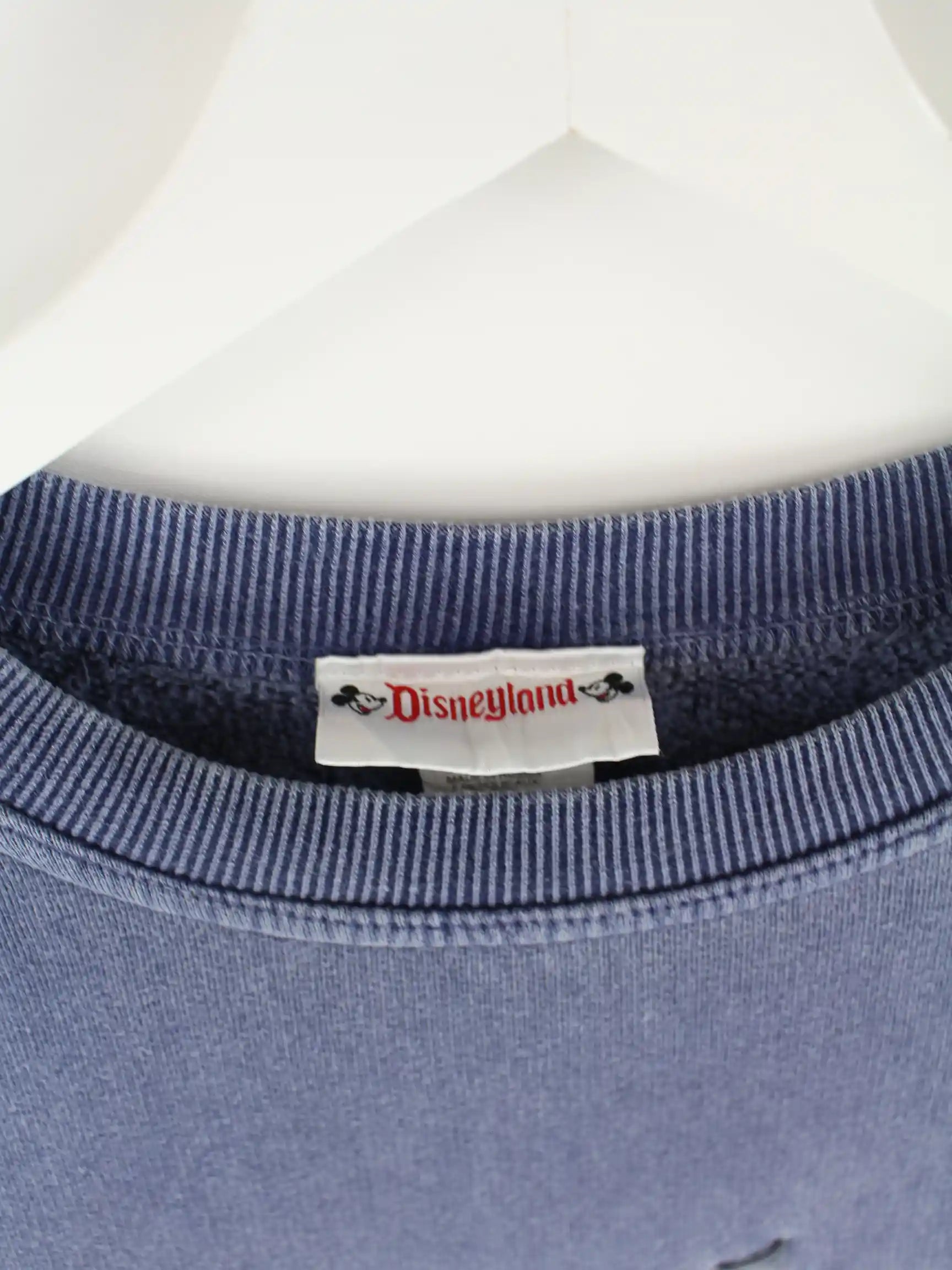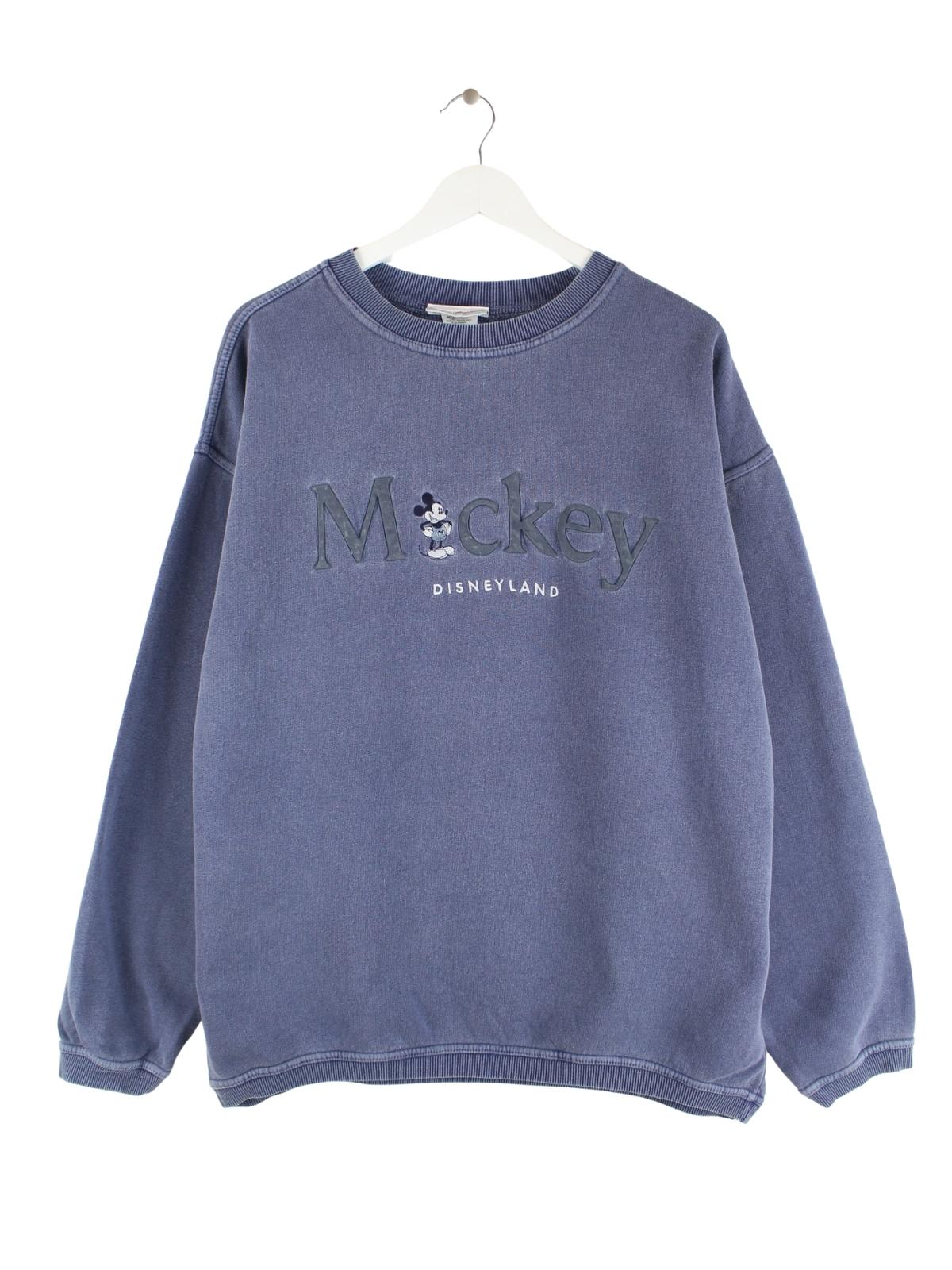 Vintage Sweater mit aufgesticktem Mickey Mouse der Brand Disney in Größe XL aus den 90'ern. Er ist aus einer Baumwollmischung produziert und in Blau auf Lager.