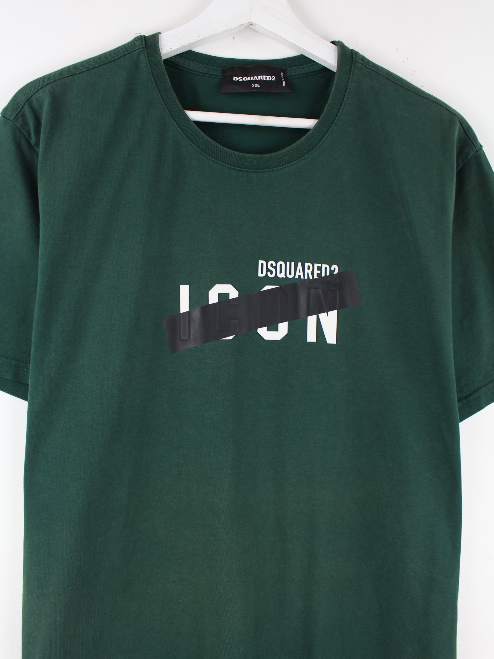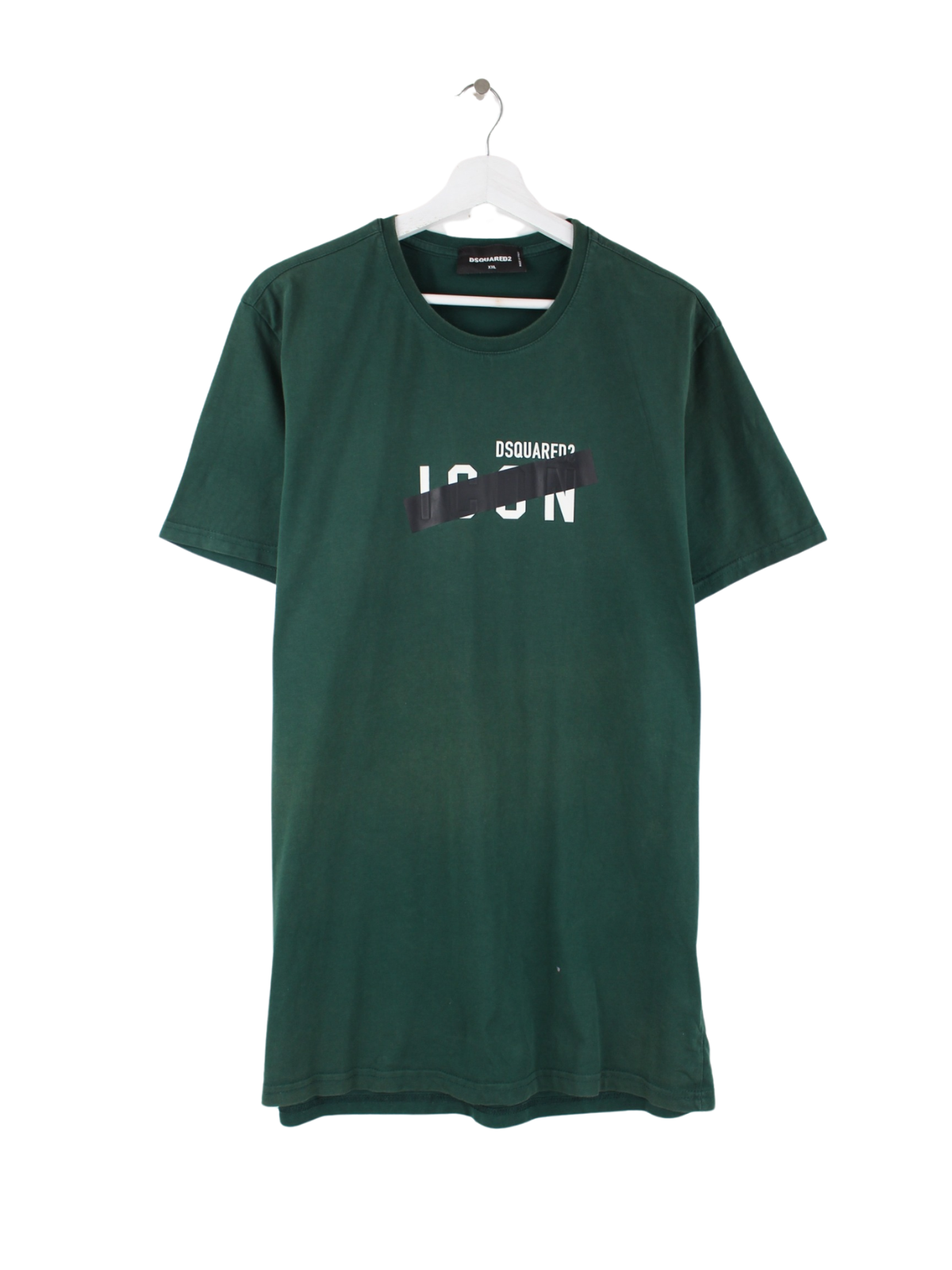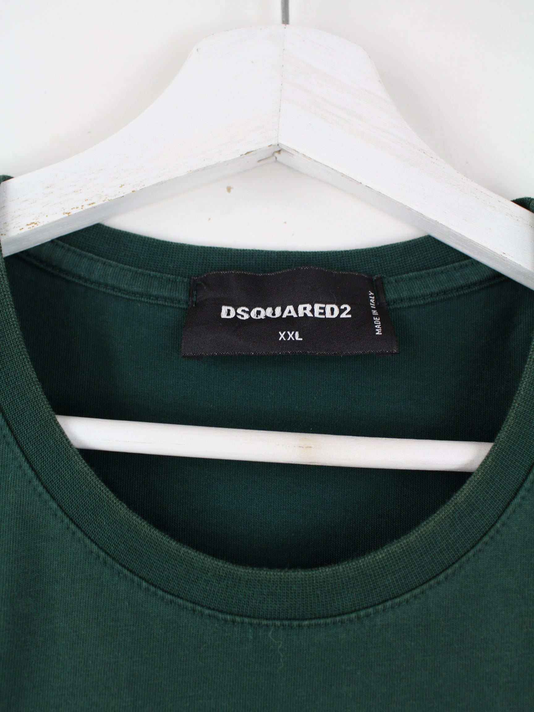 Grünes T-Shirt vom Brand Dsquared2 in Größe XXL. Es ist aus Baumwolle gefertigt und in gutem Zustand lieferbar. Mit tollem Print.