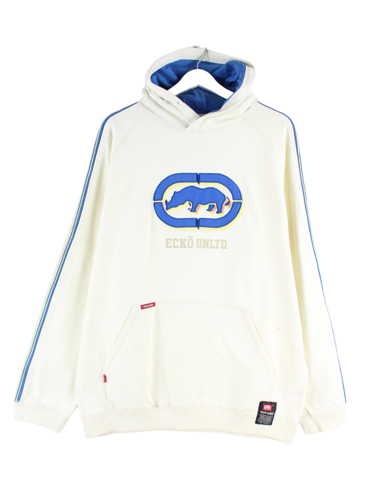 Beigefarbener Hoodie mit Stickereien von Ecko in Größe XL. Er ist aus einer Baumwollmischung hergestellt und in gutem Zustand im Angebot.