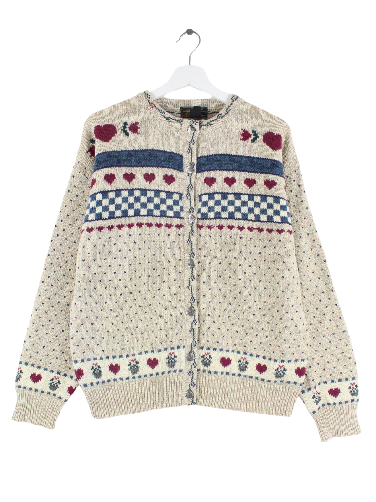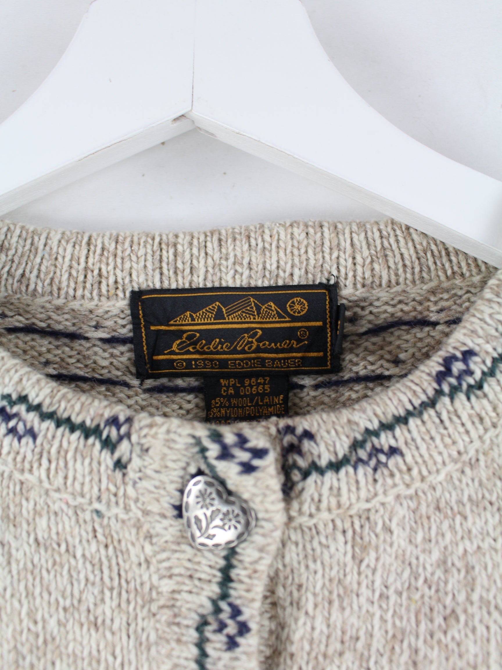 Eddie Bauer Damen 90s Vintage Strickjacke Beige M