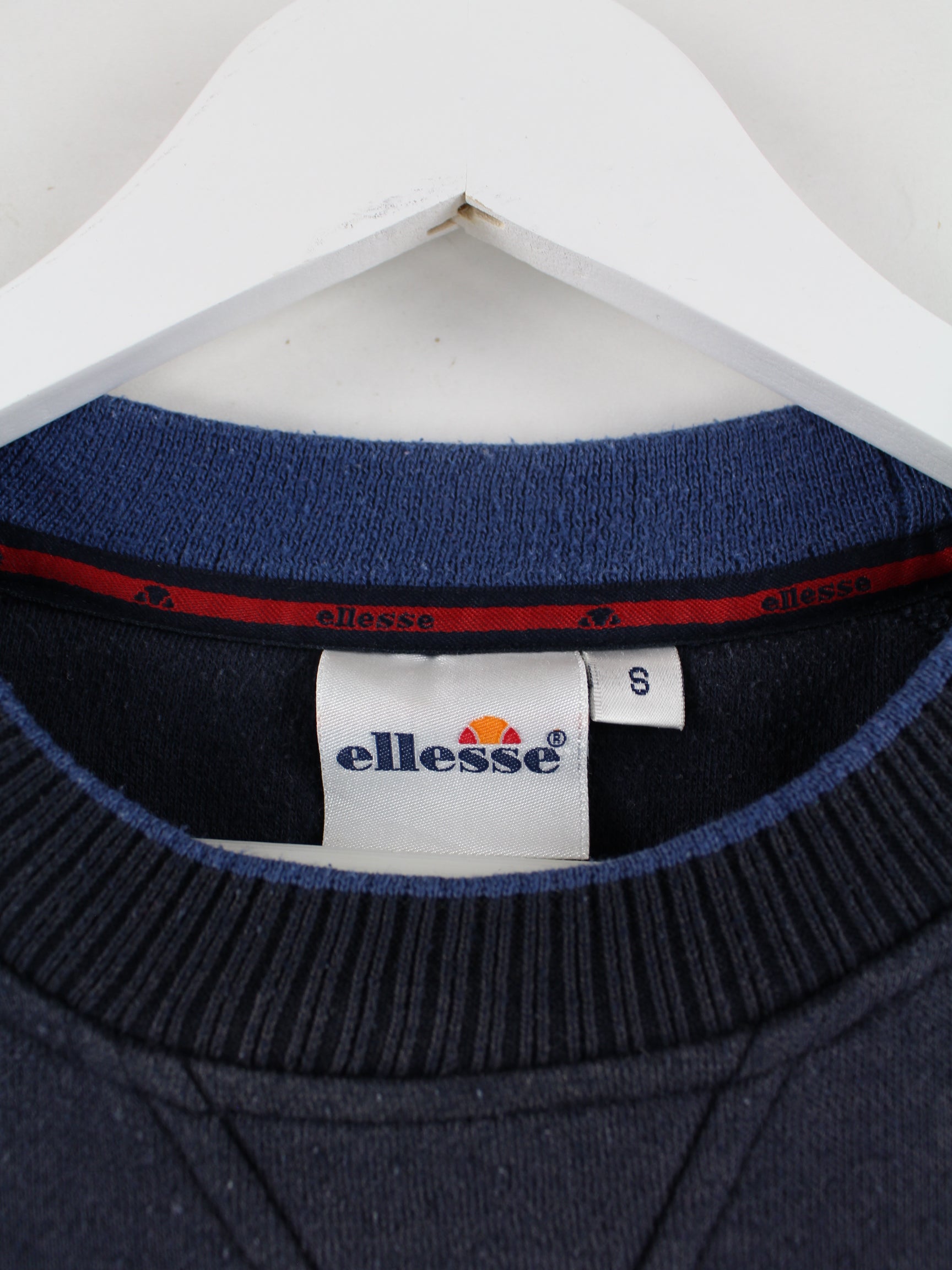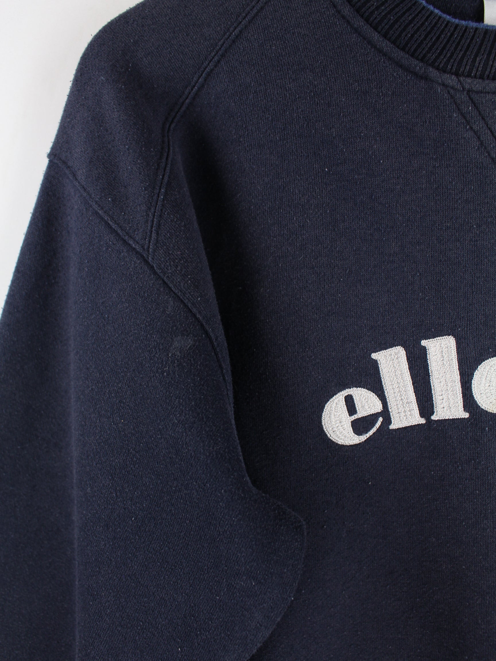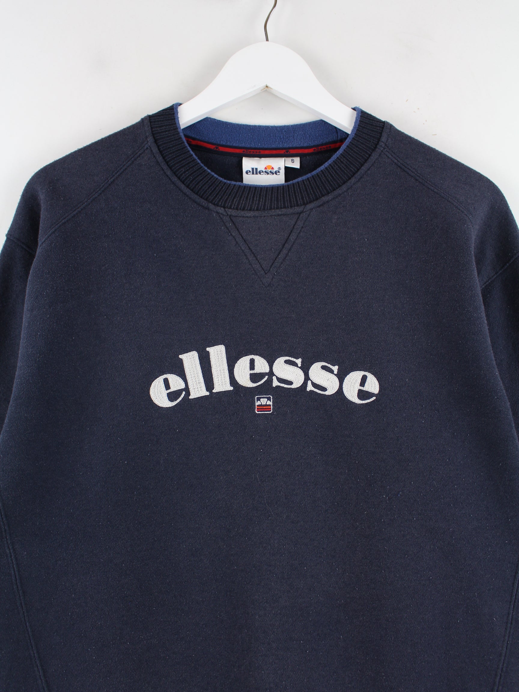 Blauer Sweater mit Stick der Brand Ellesse in Größe S. Er ist aus einer Baumwollmischung gefertigt und in gutem Zustand im Angebot.