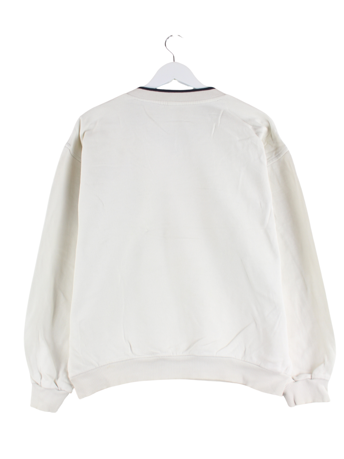 Beigefarbener Sweater mit gesticktem Logo von Fila in Größe S. Er ist aus einer Baumwollmischung produziert. Den Zustand würden wir als 'In Ordnung' bezeichnen (vergl. Bilder).