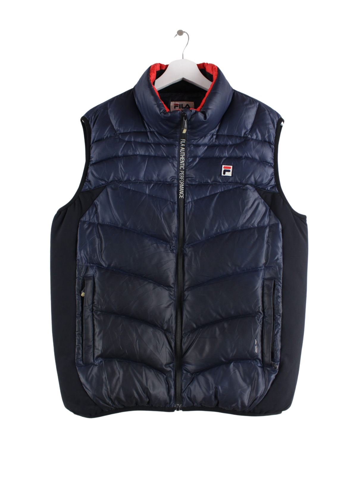 Blaue Weste aus dem Hause Fila in Größe M. Sie ist aus Synthetik gefertigt und in gutem Zustand in Stock.