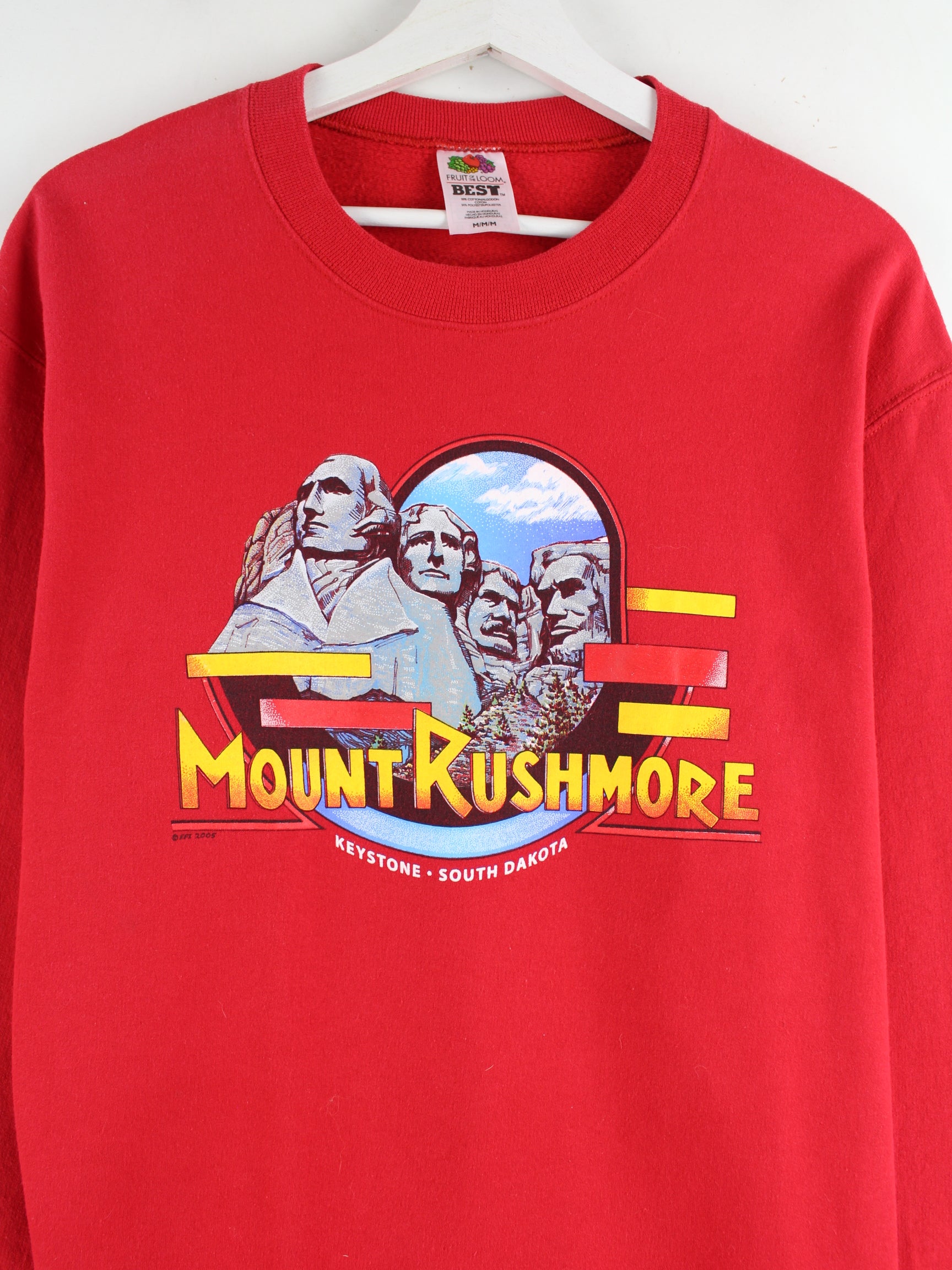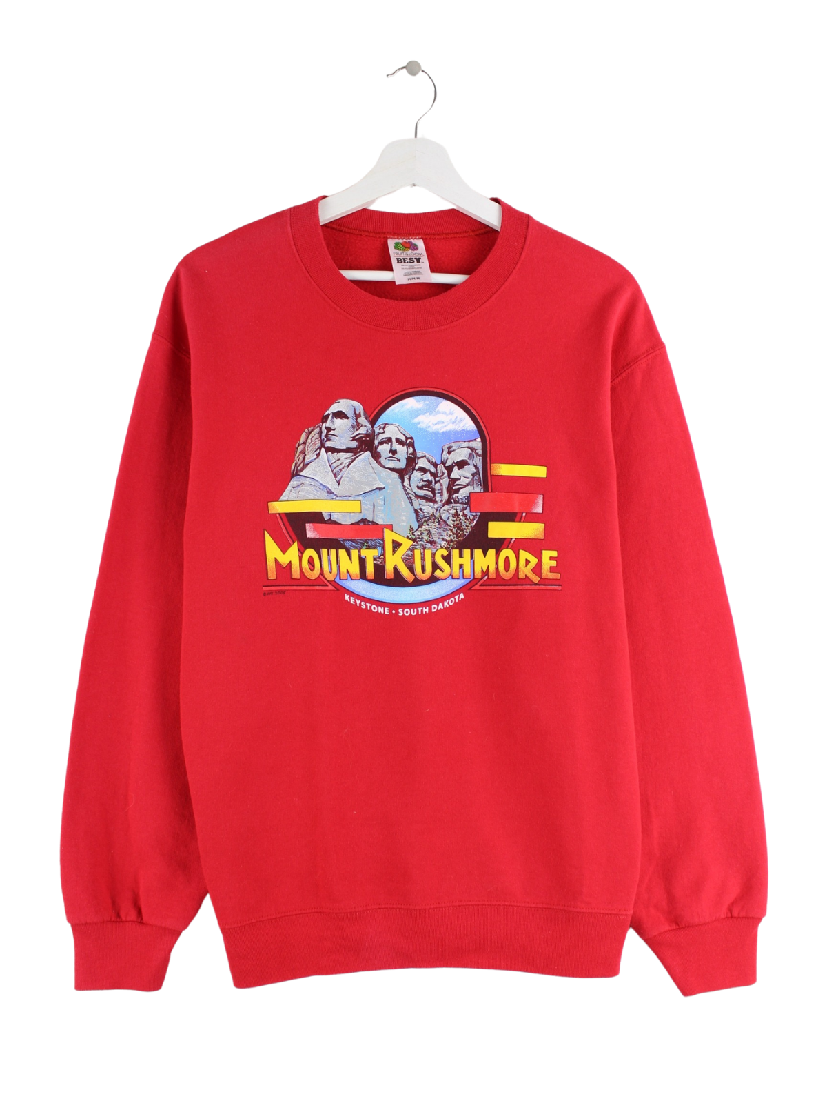 Roter Sweater vom Brand Fruit of the Loom in Größe M. Er ist aus einer Baumwollmischung angefertigt und in sehr gutem Zustand im Bestand. Mit schönem Rushmore Print.
