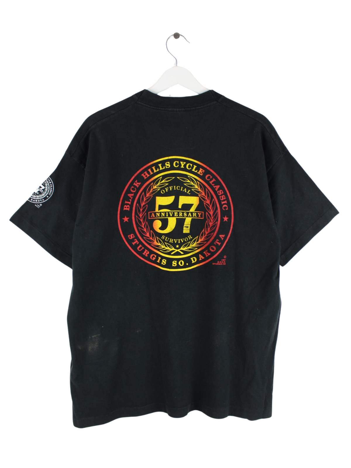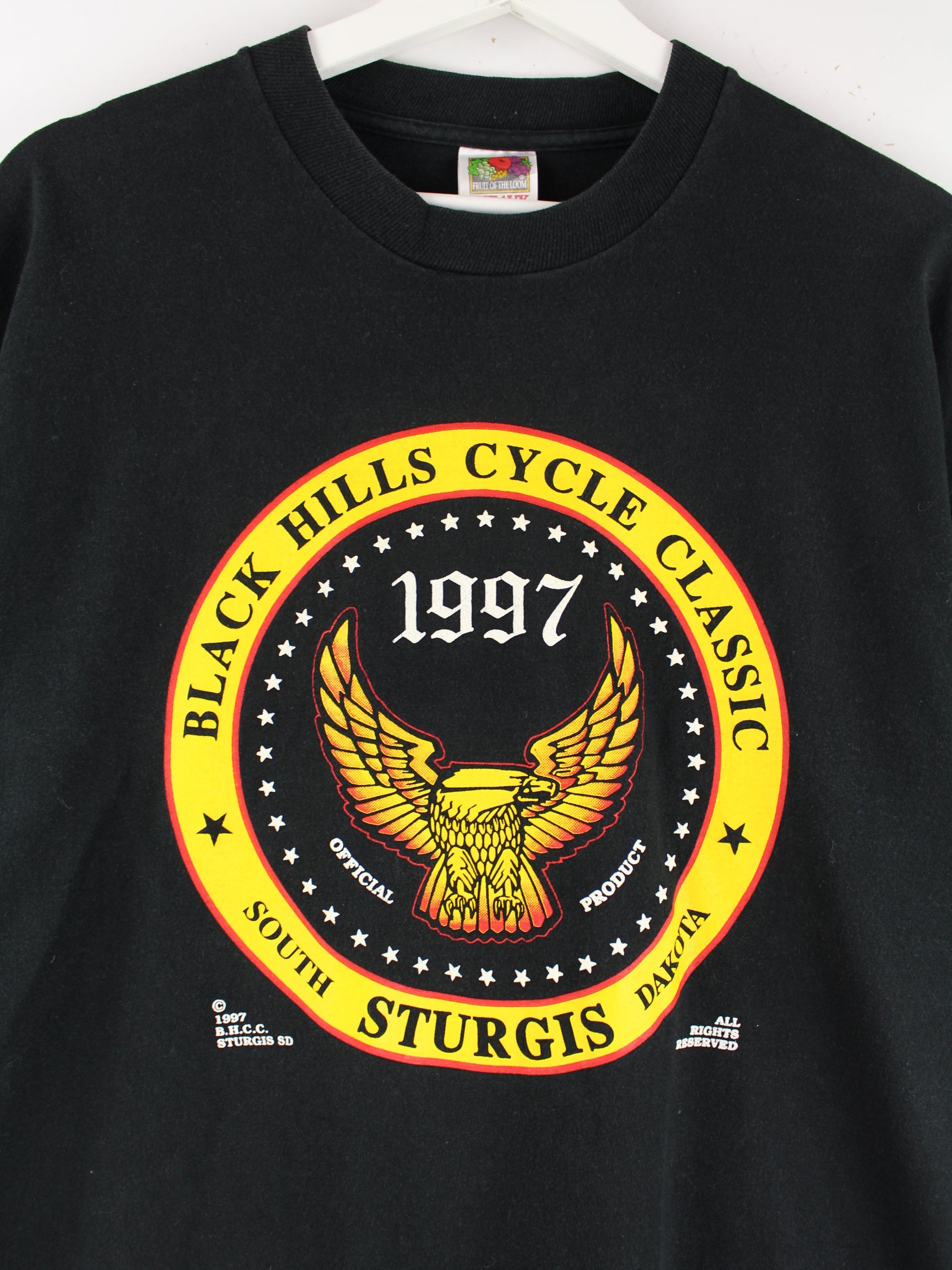 Fruit of the Loom 1997 Vintage Sturgies Dakota Print Single Stitch T-Shirt Schwarz XL