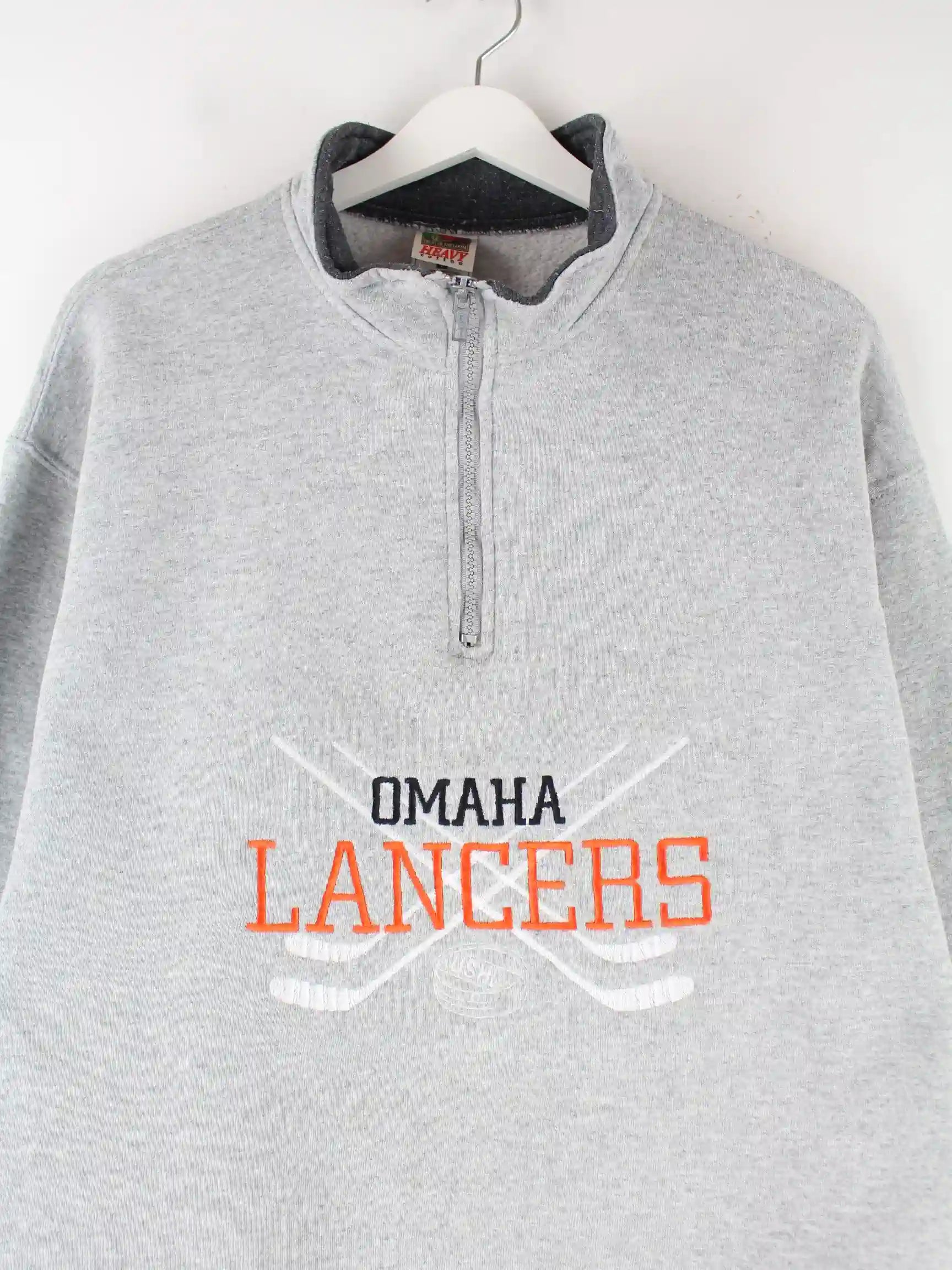 Fruit of the Loom 90s Vintage Ohama Lancers Half Zip Sweater Grau L