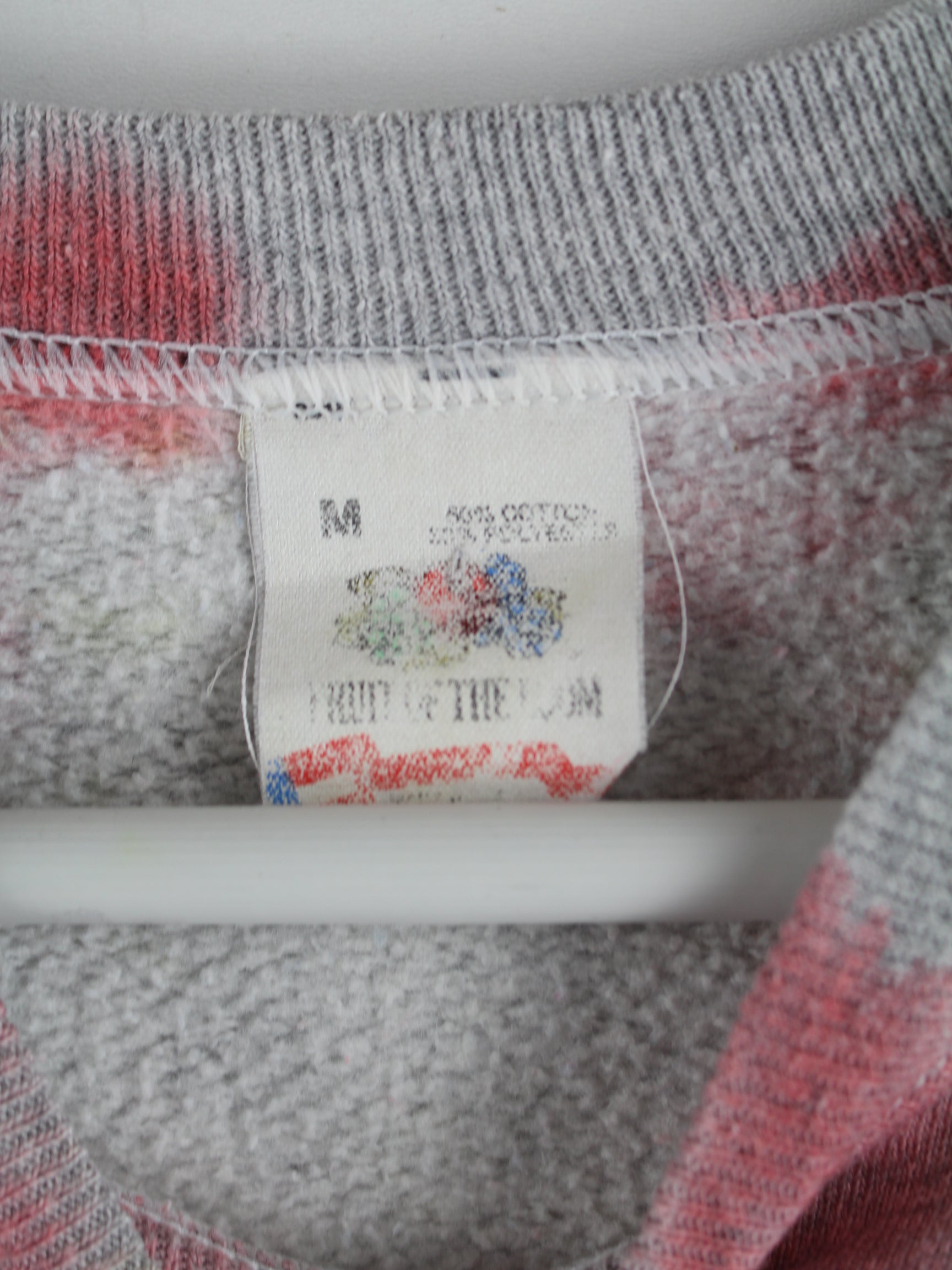 Mehrfarbiger Sweater aus dem Hause Fruit of the Loom aus den 90'ern in Größe M. Er ist aus einer Baumwollmischung gefertigt und in sehr gutem Zustand im Angebot. Mit seltenem State Print.