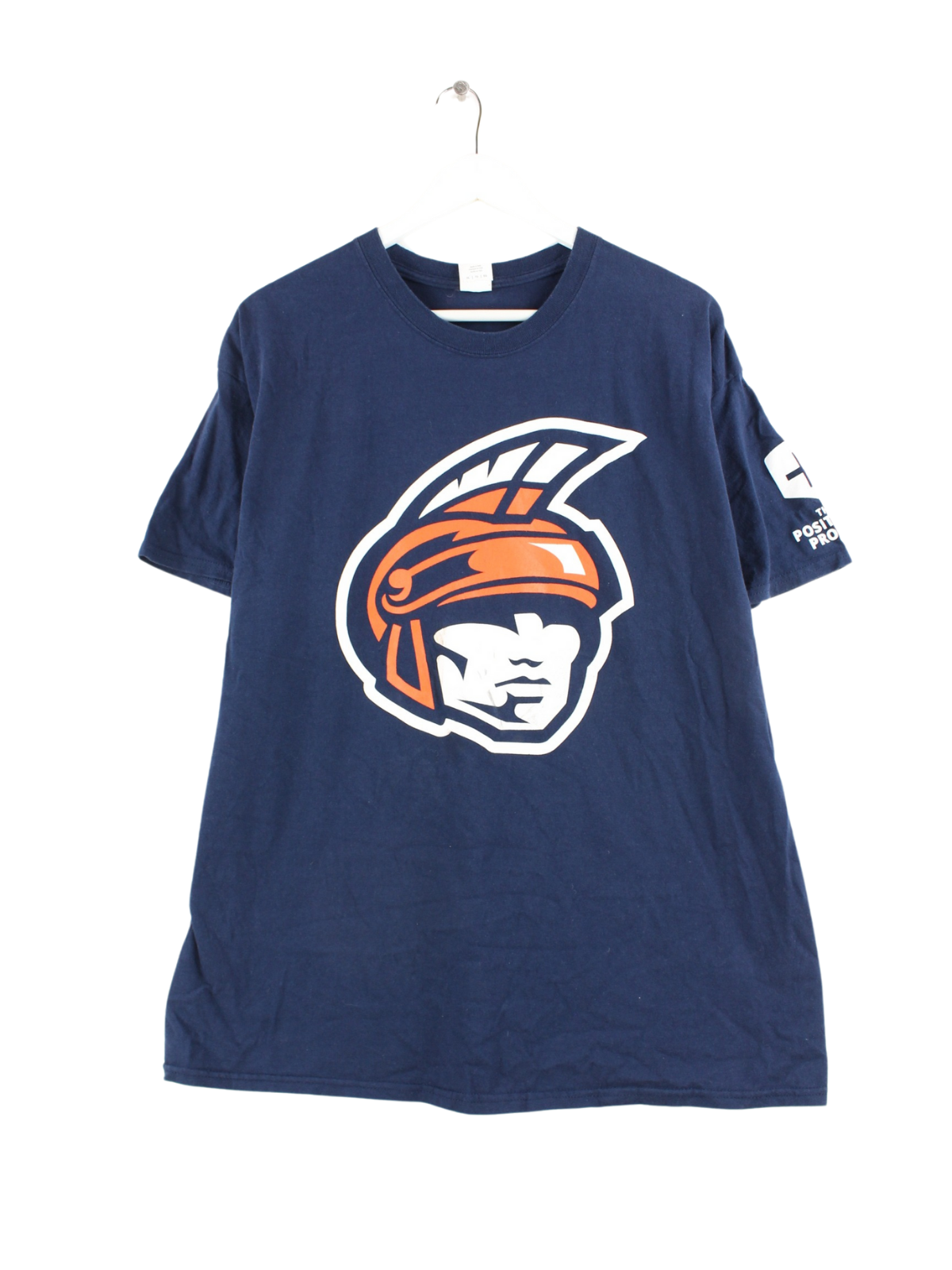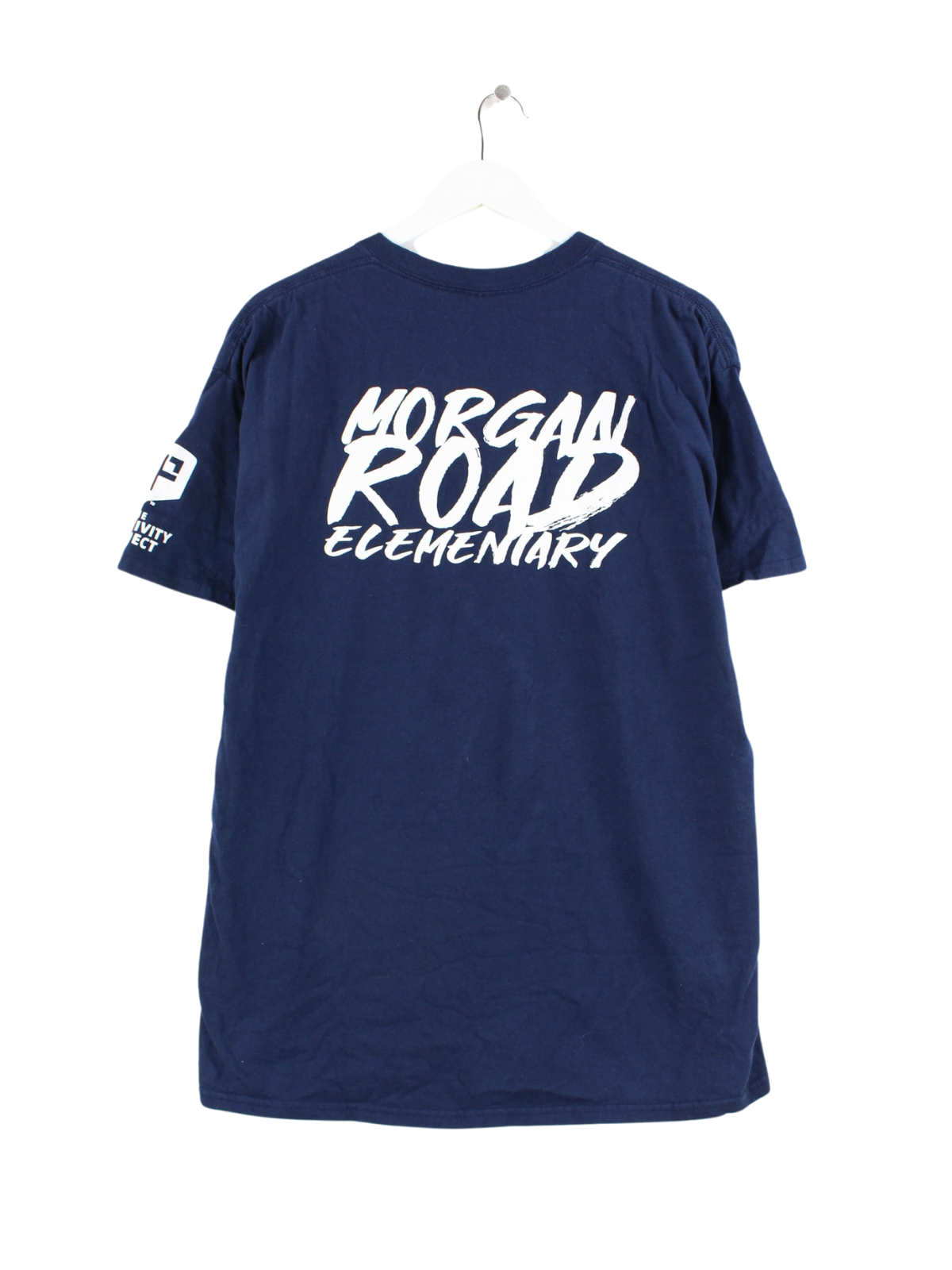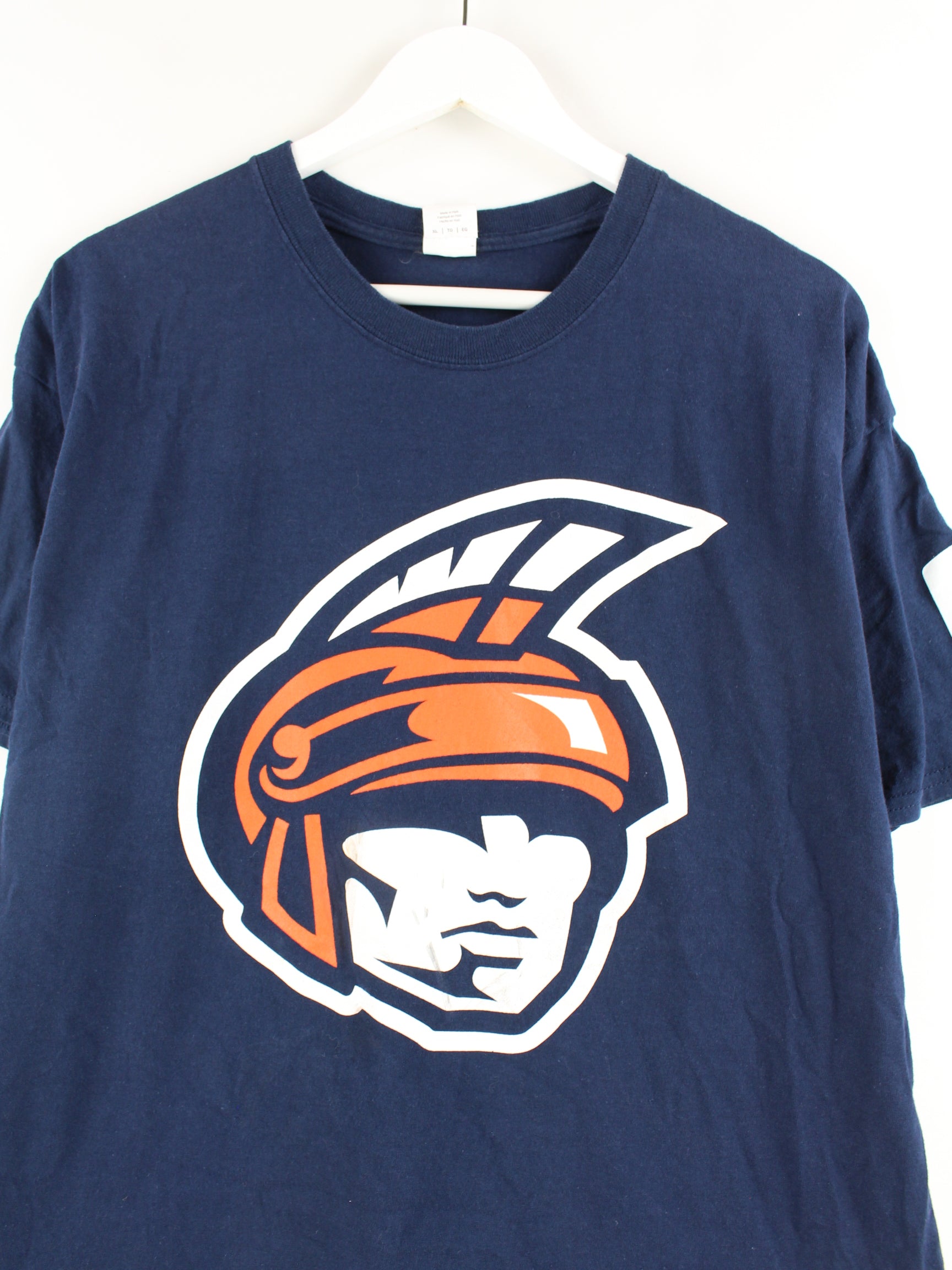 Blaues T-Shirt vom Label Gildan in Größe XL. Es ist aus Baumwolle gefertigt und in gutem Zustand in Stock. Mit schönem Print.