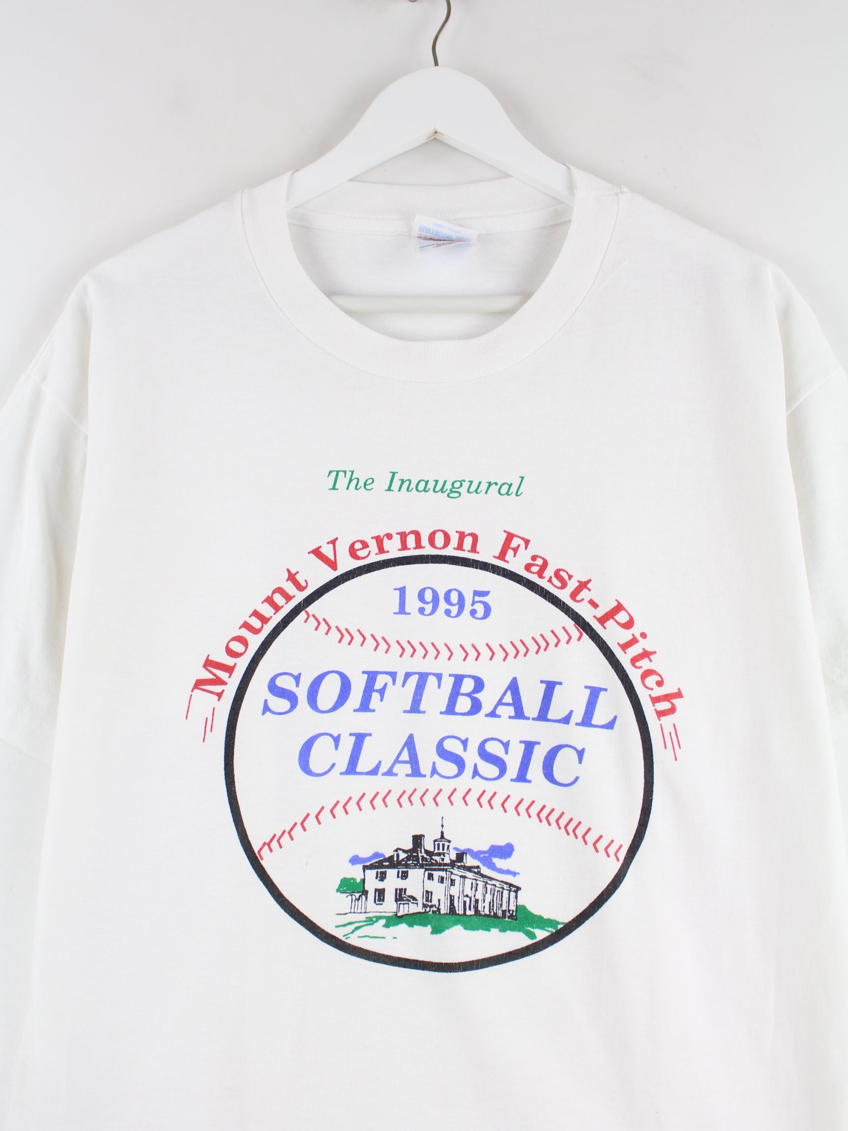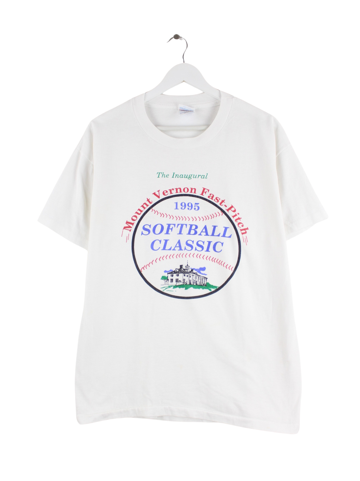 Hanes 1995 Vintage Softball Single Stitch T-Shirt Weiß L