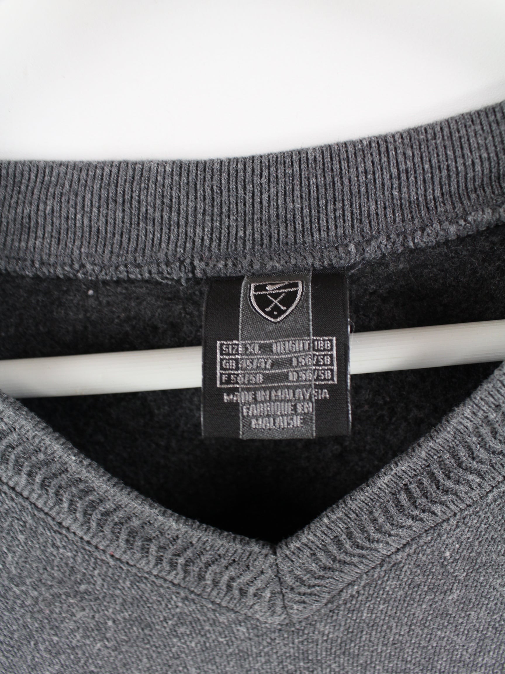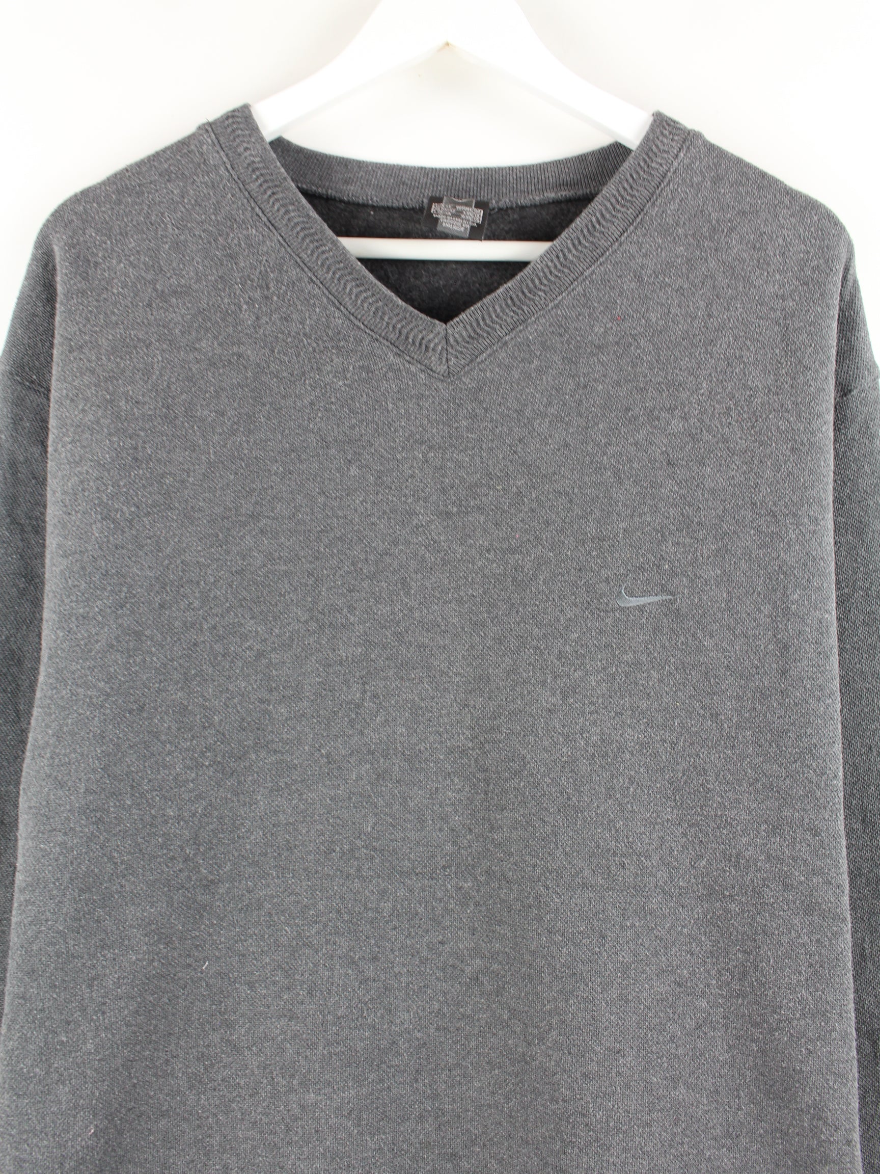 Grauer Pullover vom Label Nike aus Anfang der 2000'er in Größe XXL. Er ist aus Baumwolle hergestellt und in sehr gutem Zustand im Bestand.