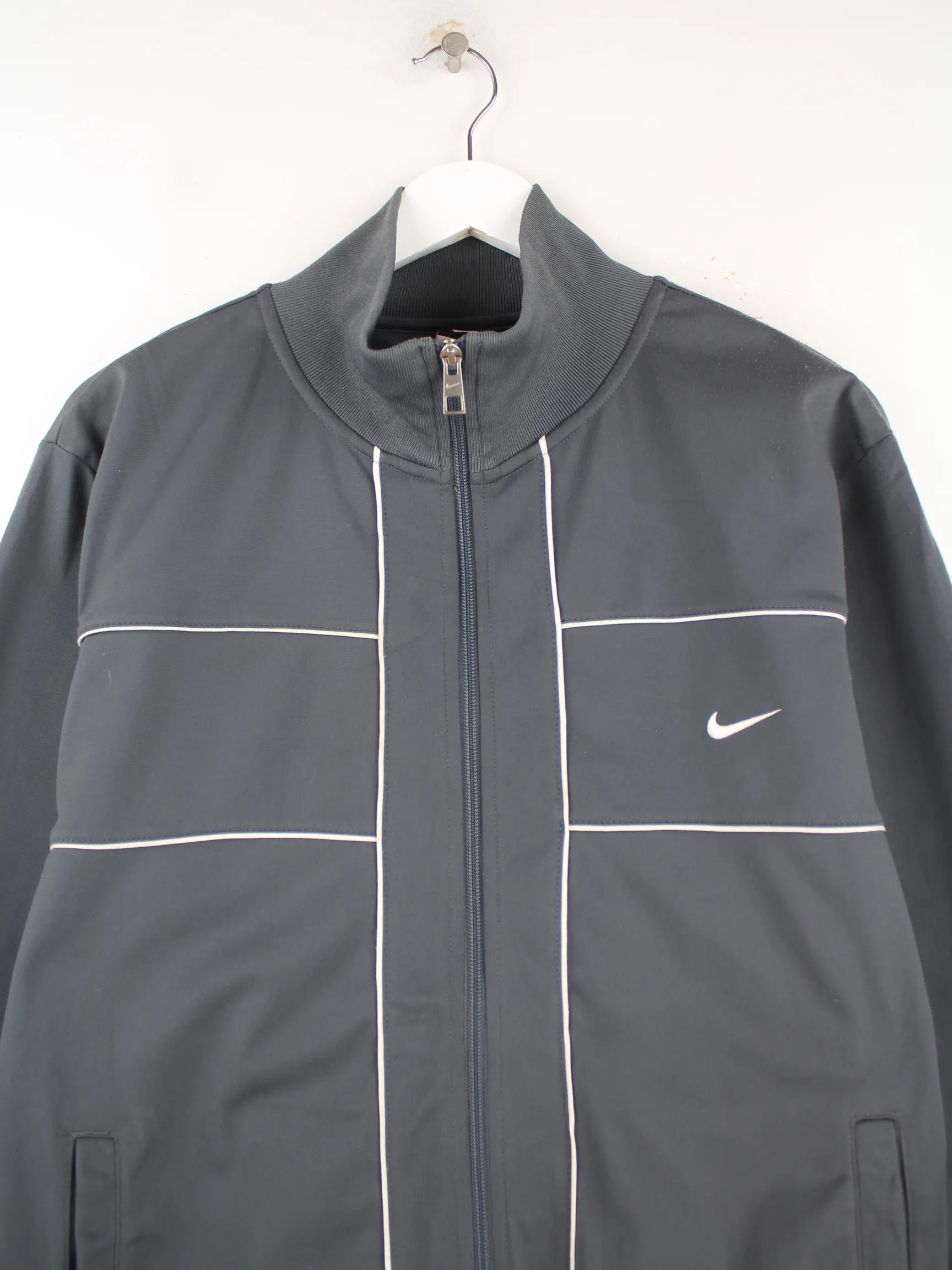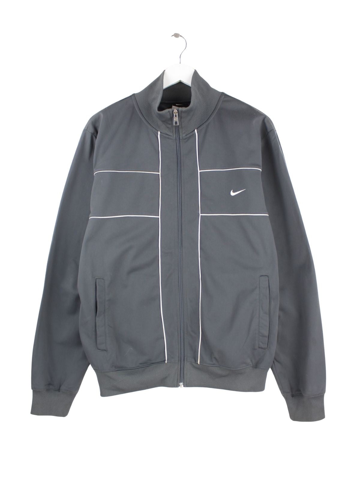 Graue Trainingsjacke von Nike in Größe M. Sie ist aus Synthetik gefertigt und in sehr gutem Zustand im Angebot.