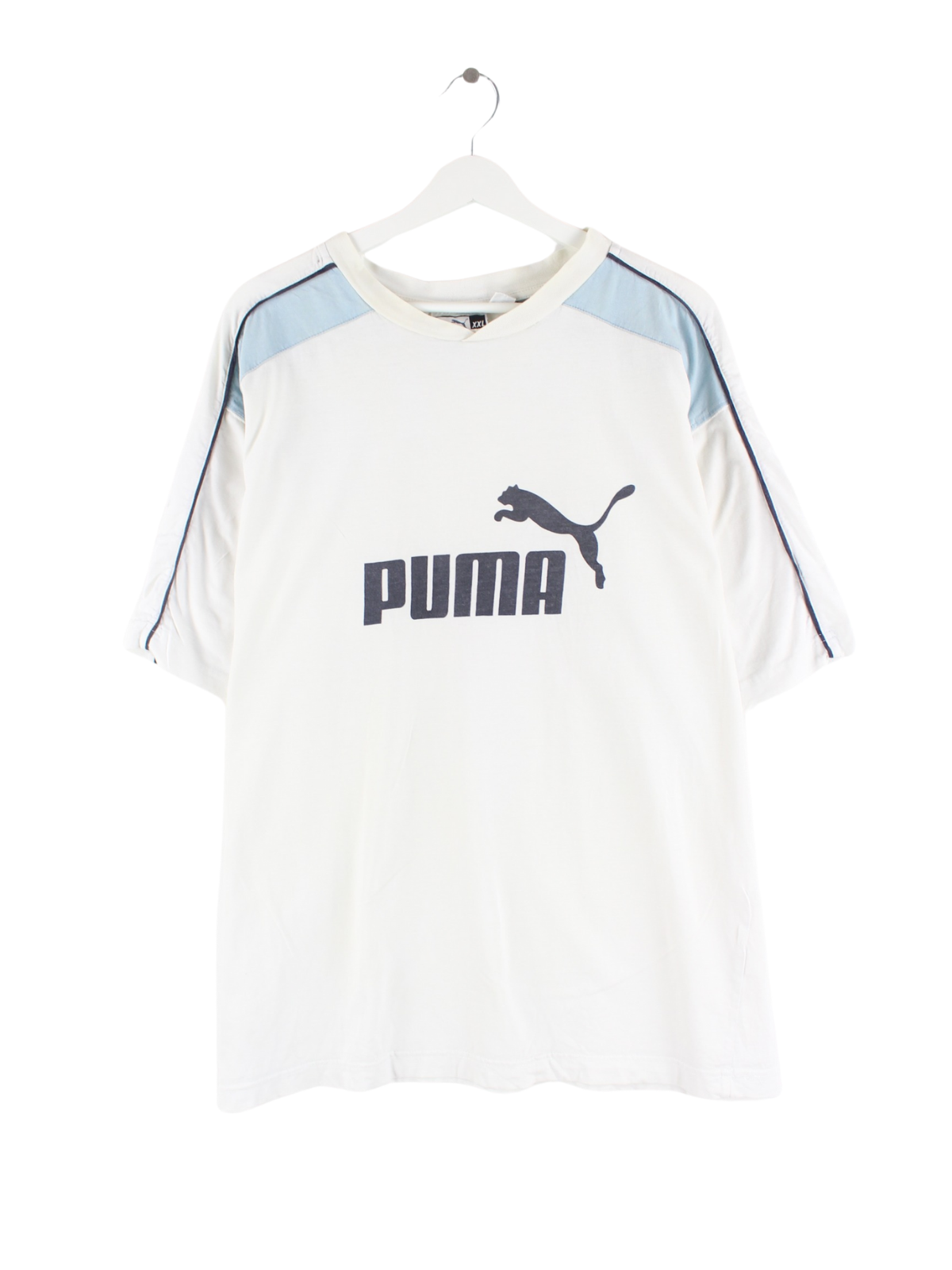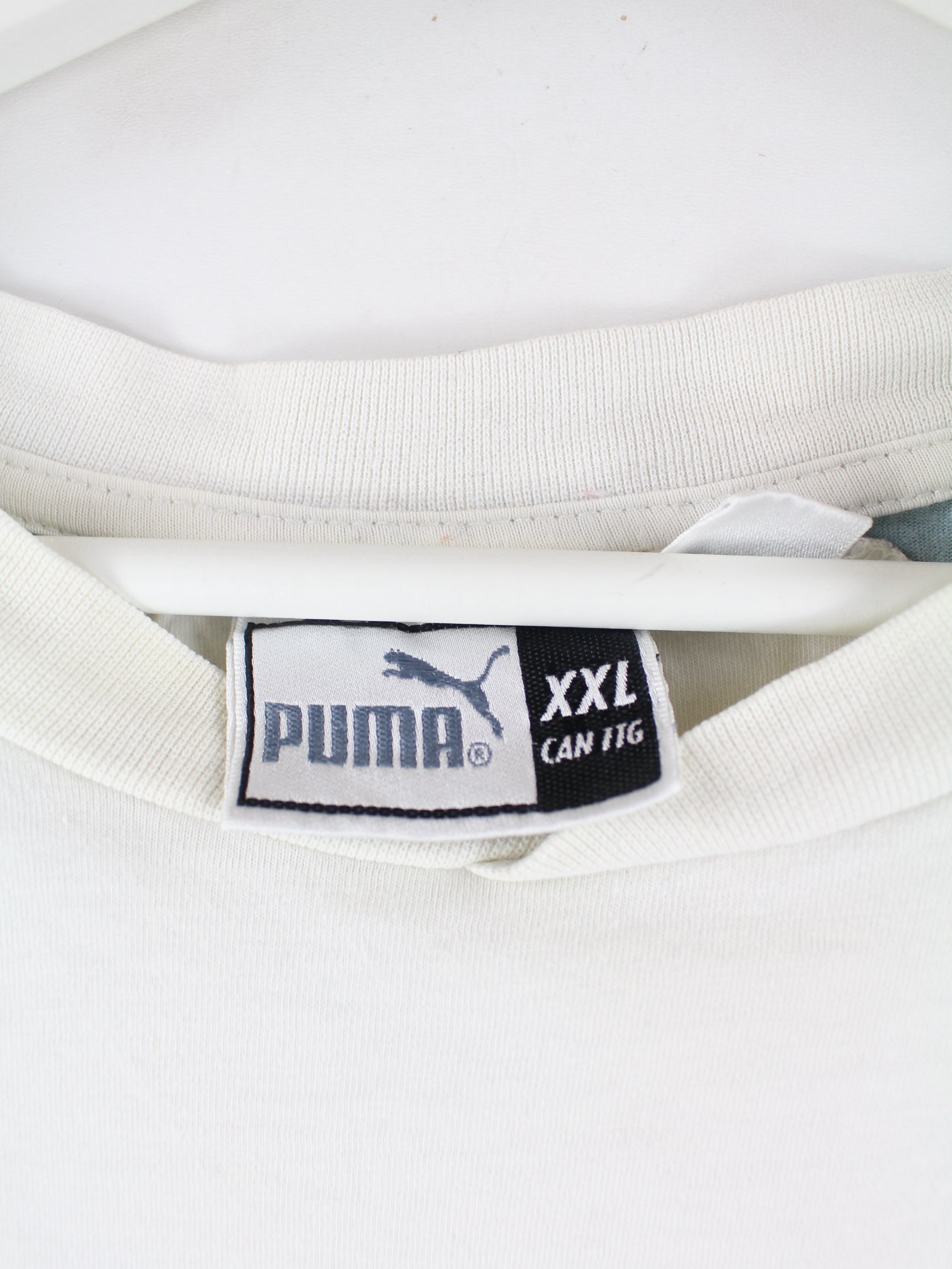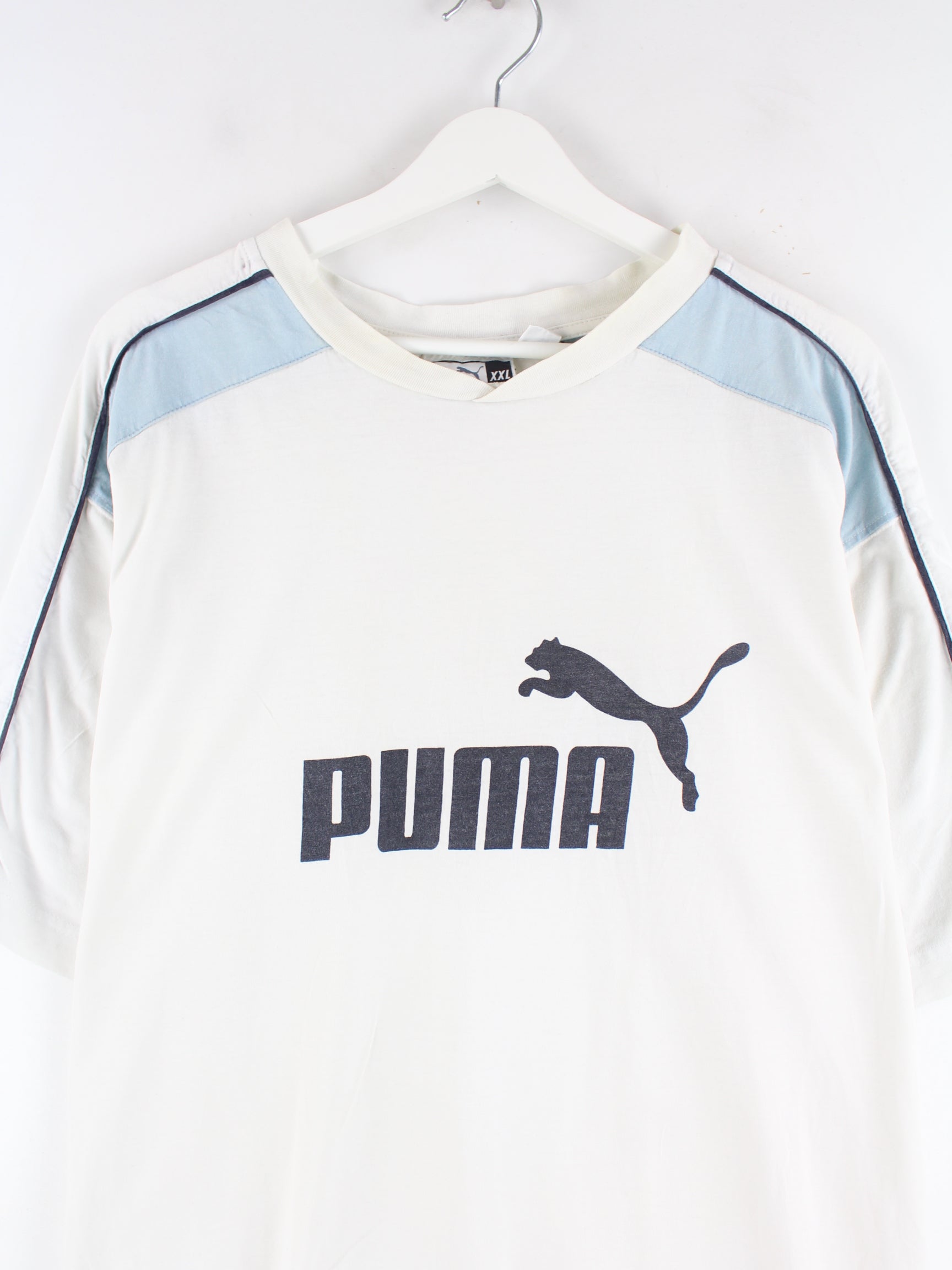 Weißes T-Shirt von Puma in Größe XXL. Es ist aus Baumwolle produziert und in gutem Zustand lieferbar. Mit schönem 00s Print.